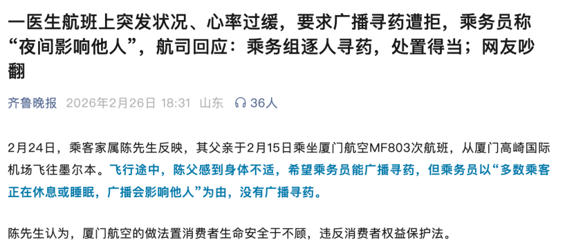 这一突发状况虽已化解,但所幸有惊无险的背后,是一个值得追问的现实问题:在飞机、高铁等密闭且医疗资源有限的公共交通场景中,急救药品的配置能否覆盖更多突发疾病的可能?
