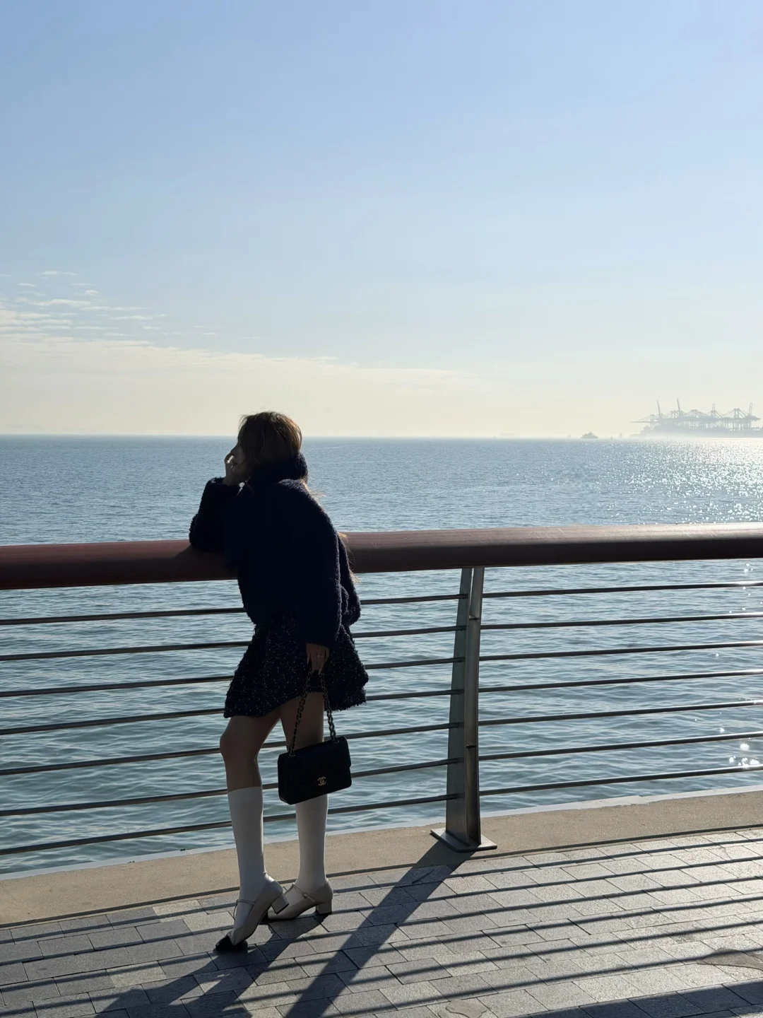 蛇口转转 一下午好像就发呆了 深圳拍照毛毛外套海边拍照日常plogins博主韩里韩气的深圳公园深圳海边韩系穿搭高级感