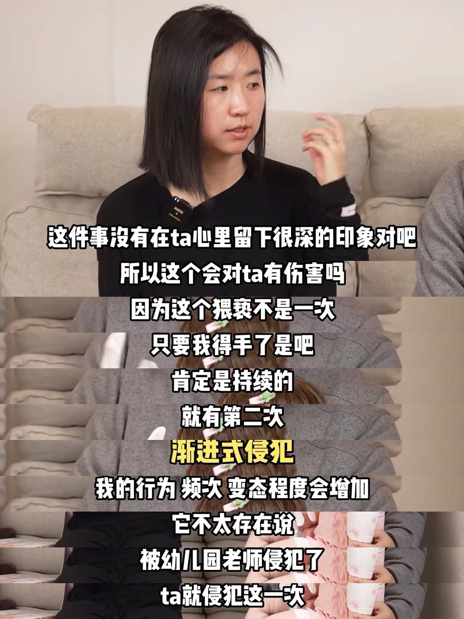 🍒越熟悉的人对孩子的侵犯越温和,越不留痕迹,越不可查,他害怕被你知道,所以手段极其温和让孩子在不知不觉中配合,孩子身体不留伤害,没有痕迹,甚至都不红都不痛,你给孩子洗澡,能发现什么?什么都发现不了。