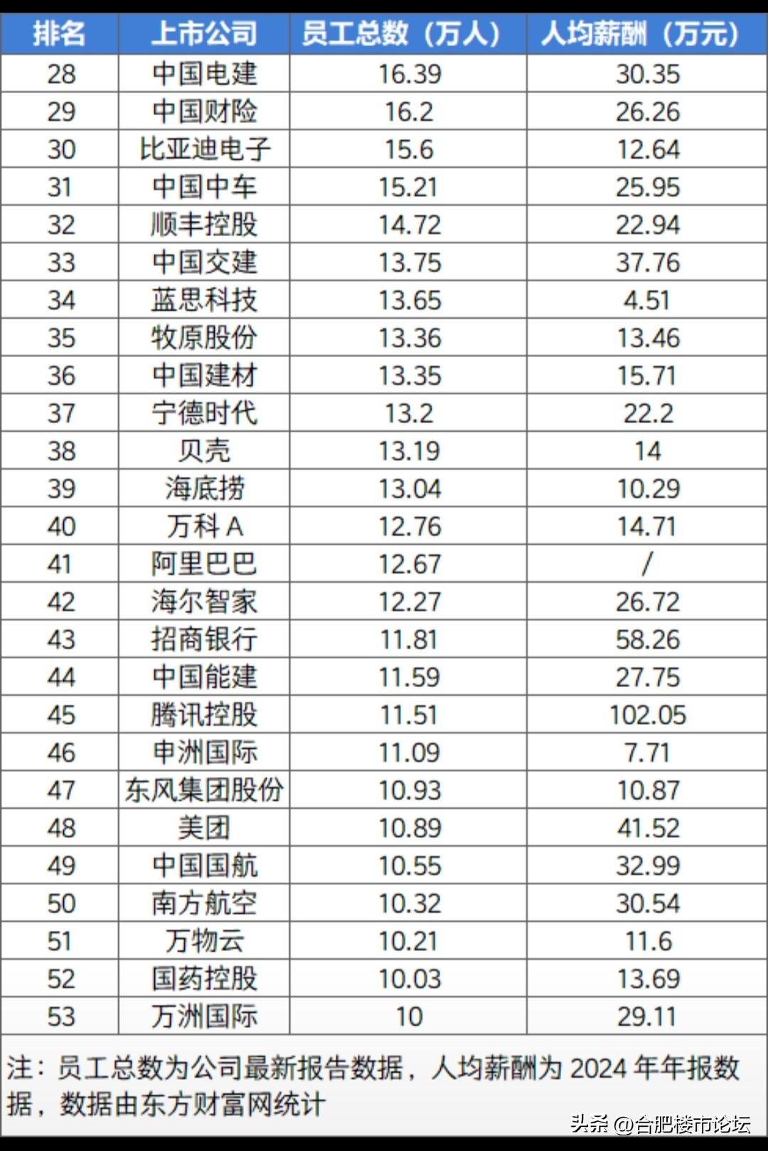 大企业的人均薪酬,还是要国资的才行。比亚迪员工最多。