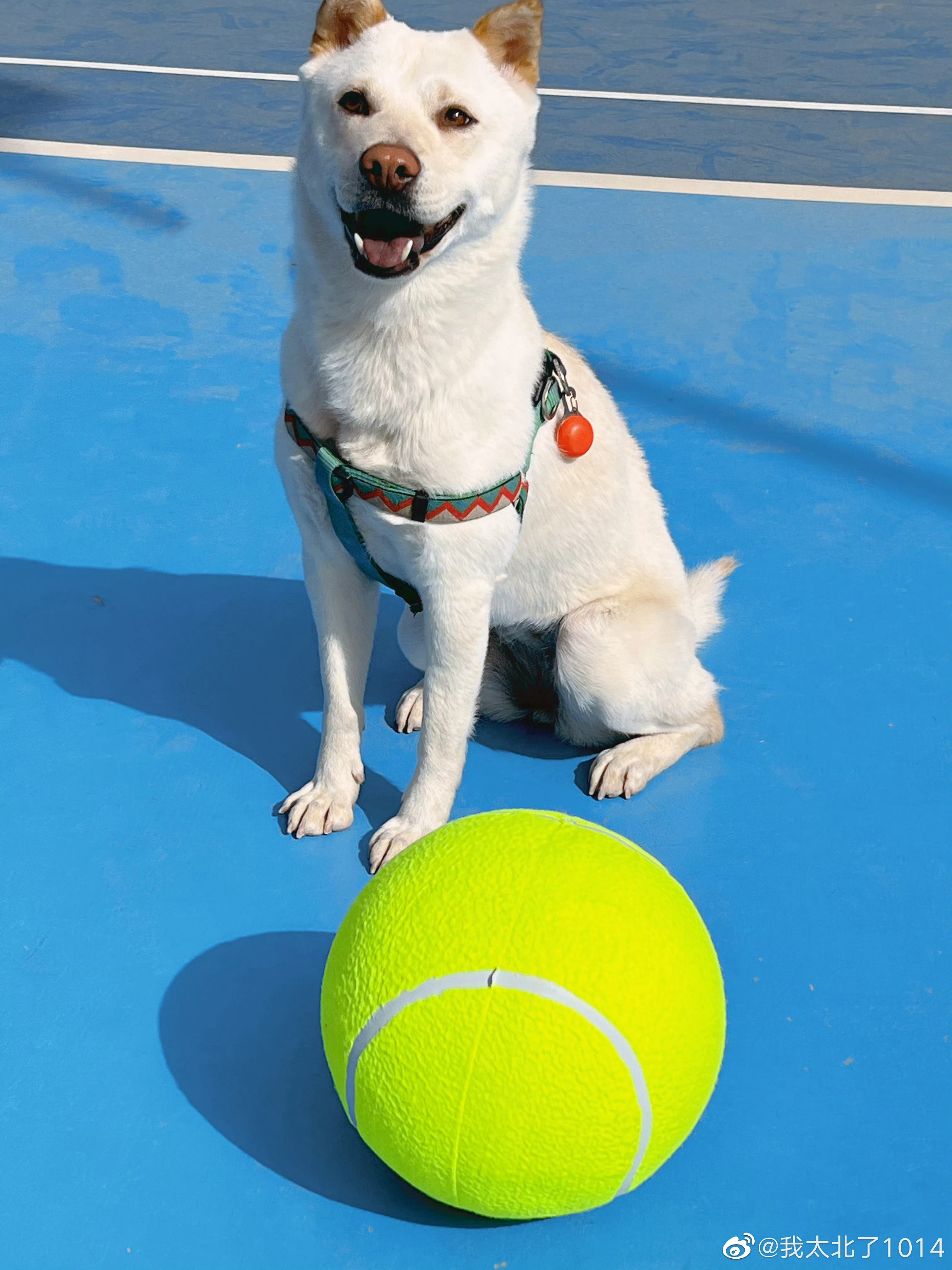 要知道咱家小狗是别的运动都不会..只会玩网球的