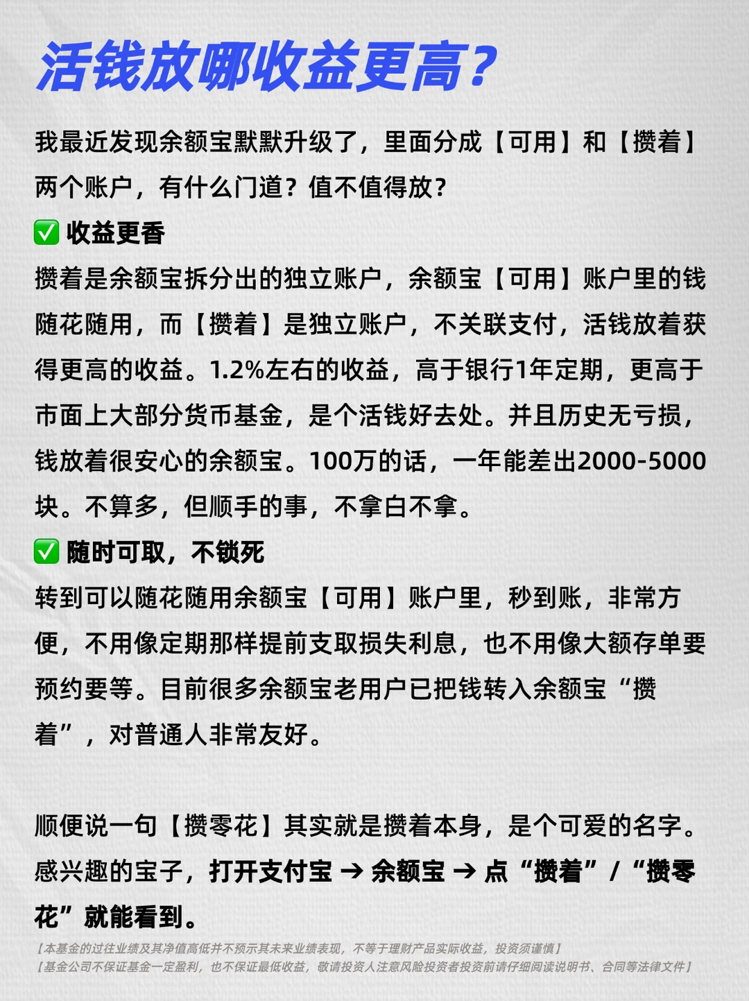 我最近发现余额宝默默升级了,里面分成【可用】和【攒着】两个账户,有什么门道?值不值得放?