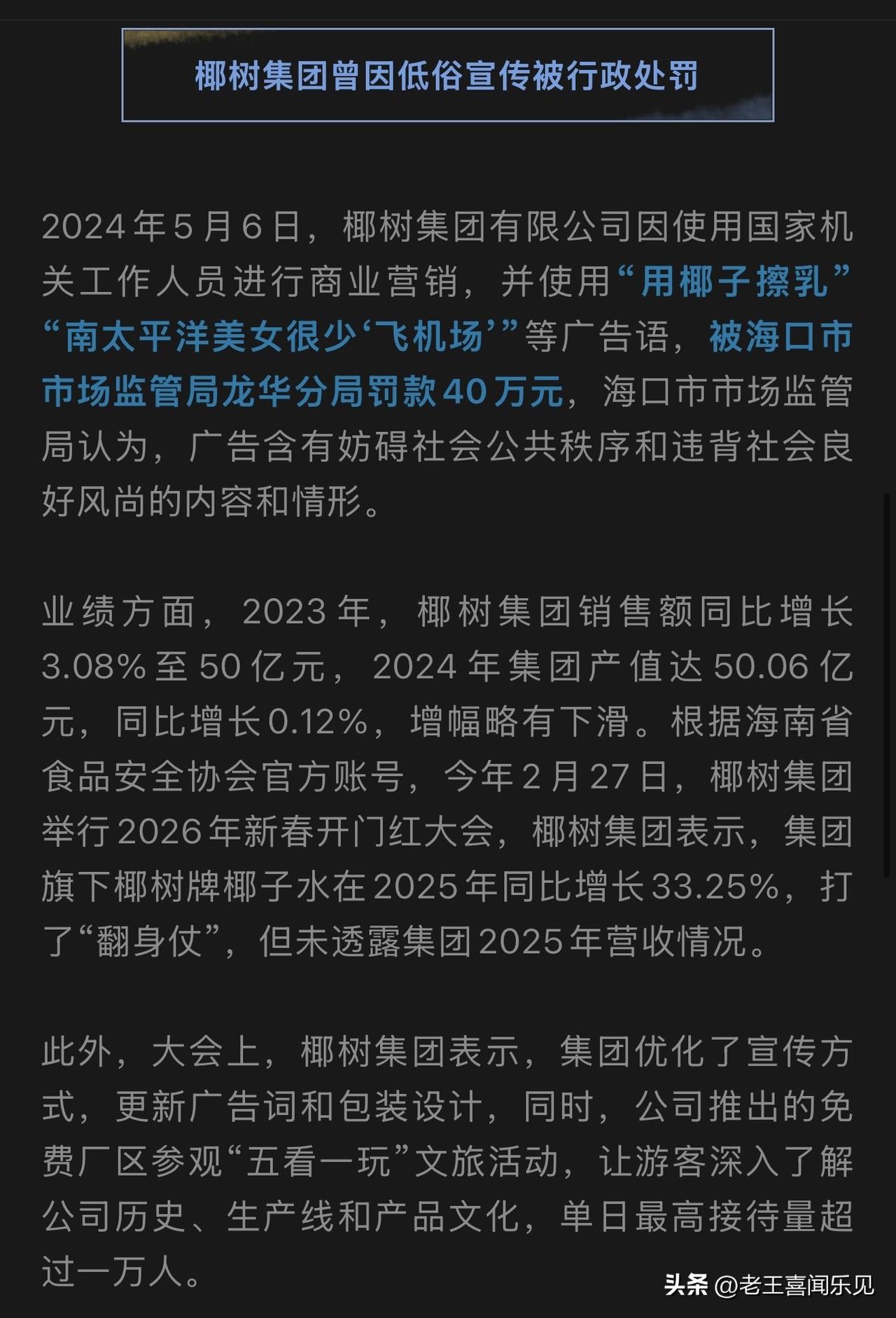 椰树的广告,“从小喝到大”——广告语的水平也一直稳定在“从小挨罚到大”,更是广告界的“钉子户”——主打一个“屡教不改,屡罚屡战”。 人家请代言人花钱请明星,椰树的代言另辟蹊径直接请市场监管局,40万罚款买一次全网热搜,这性价比,可能广告部做梦都能笑醒。 椰树涉擦边广告被罚40万