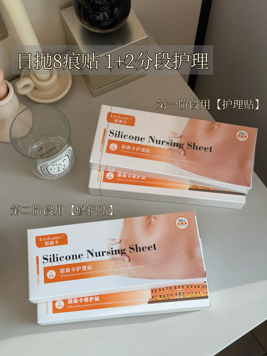 3.疤痕护理:我囤的是丽森卡8痕贴,1+2分段式护理,先护理再修护!因为它是日抛设计的很干净卫生,用完就丢,次抛很省事