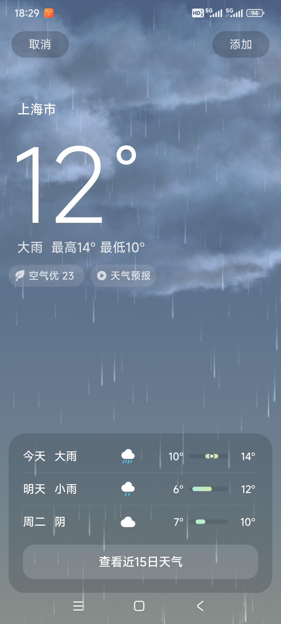 今天是2026年3月1日,最近三天时间中的有一天时间,江苏省南通市,有雨。上海市