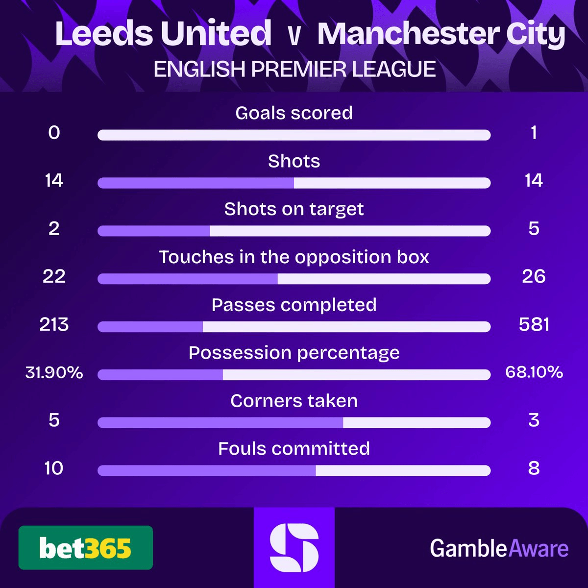 曼城自1928年以来,首次在联赛客场对利兹联实现三连胜