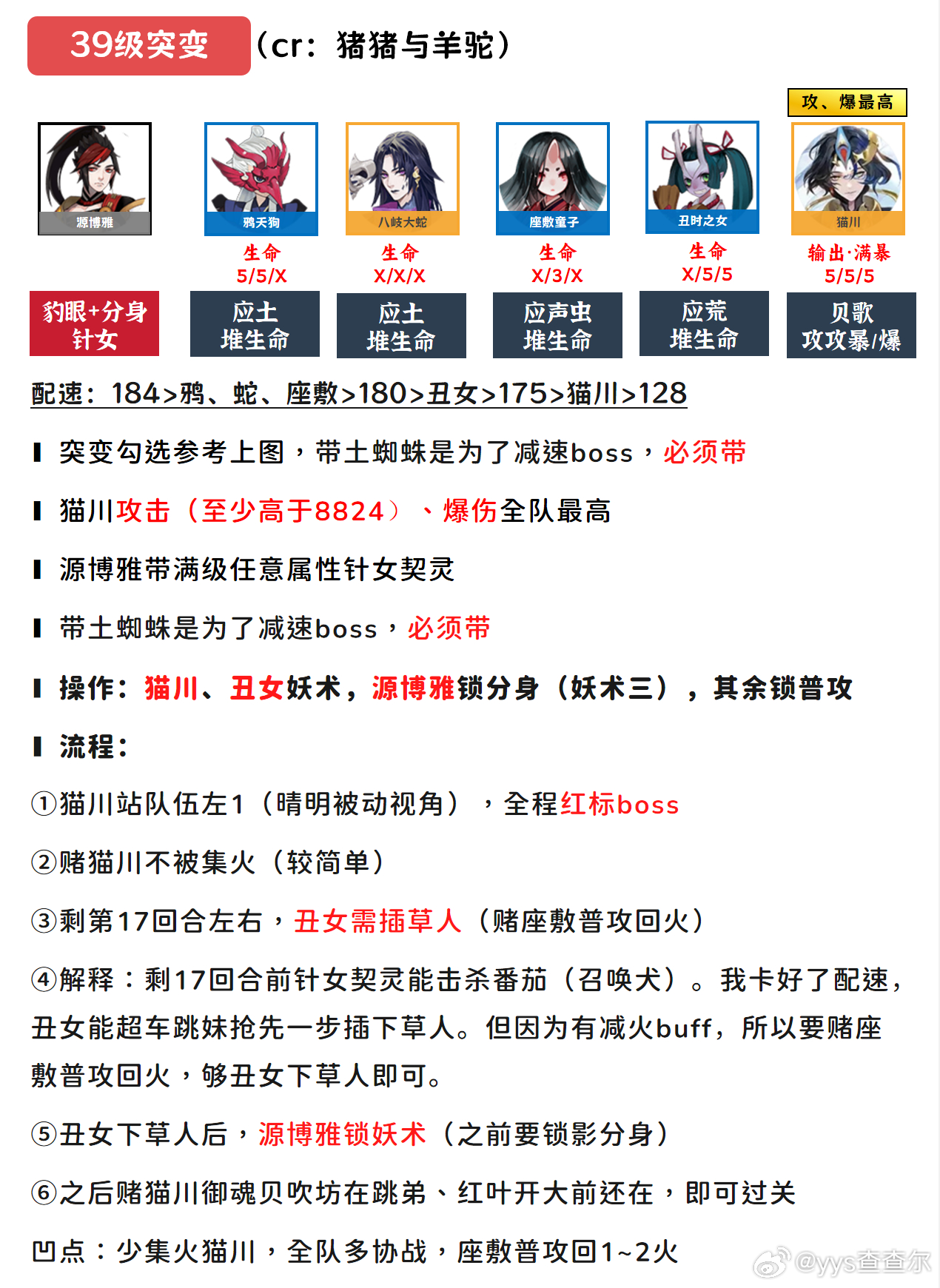 阴阳师手游超话创作官阴阳师马年春节版本 【妖行试炼】逢魔之原,39级突变冲榜流程■玩法介绍:网页链接■39级赌点(突变最高41级):①赌全队多协战、多触发洗筋伐髓(难度中)②赌不集火猫川(较简单)③赌座敷普攻总计回1~2火个人感觉:优化了配速,体感还可以,只要猫川面板不是特别低就容易过