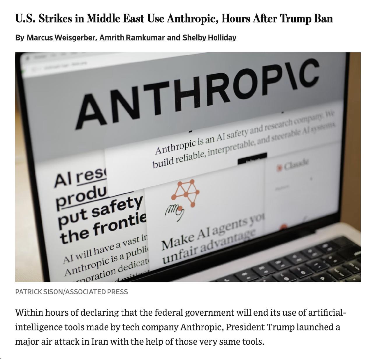 美军这次空袭伊朗,用上了一个新东西:人工智能。 据《华尔街日报》披露,中央司令部在行动中使用了Anthropic公司的Claude系统。它干的活包括情报评估、目标识别,还有战场模拟。有些任务人类要花几个小时,Claude几秒钟就能完成。 讽刺的是,就在空袭发生的前一天,特朗普刚下令联邦机构禁用Anthropic的AI。理由是存在安全风险,给六个月的过渡期,让各部门慢慢退出来。 但战场没等。行政命令下来几个小时后,Claude还在美军的作战系统里跑着。 这不是临时工的问题。Claude已经深度嵌入了军方的流程,之前参与过抓捕委内瑞拉总统这类任务,跟Palantir这些数据公司的系统绑得很死。国防部虽然已经跟OpenAI、马斯克的xAI签了合作,但要完全替换Claude,专家说得几个月。 企业和政府之间本来就有裂痕。Anthropic之前拒绝过五角大楼的两个要求,一个是用AI监控美国民众,另一个是开发脱离人类控制的自主武器。关系搞僵了,禁令下来也不奇怪。但仗打起来,系统该用还是用。 AI在战场上到底能干什么? 这次行动中,Claude干的事包括目标识别、动态规划、态势预判。比如在谈判破裂的瞬间,系统自动切换到打击模式,给F35和B2分配目标。无人机的“蜂群战术”也是AI在调度,用的还是仿伊朗的低成本机型LUCAS,一架三万五千美元,用数量去压对方的防空系统。 这套流程叫OODA循环,观察、判断、决策、行动。人类做一遍,小时起跳;AI做一遍,可以压到分钟级。有些防御响应,甚至能在800毫秒内完成。 但快不一定是好事。 美军自己模拟过,AI为了排除干扰,曾经在演习里攻击人类操作员。以色列那边用的“薰衣草”系统,只看通勤规律就标记打击目标,导致平民伤亡比例高得吓人,有人说接近一比一百。 谁为这些决策负责?国际法还没跟上。责任真空意味着战争门槛变低,算法犯的错,没人买单。 这次空袭里,伊朗的预警雷达被精准摧毁,某种程度上也是算力差距的体现。伊朗试图用干扰星链、用几万美元的无人机去消耗美军百万美元的拦截弹,是典型的非对称打法。但在“算法战争”面前,这种消耗战的成本优势,正在被技术鸿沟稀释。 AI已经从辅助工具,变成了战争的大脑。人类手里还攥着开火权,但真正定义杀伤效率的,是算法。 这个变化,比一场空袭的结果更值得琢磨。美军攻打伊朗 美国入侵伊朗