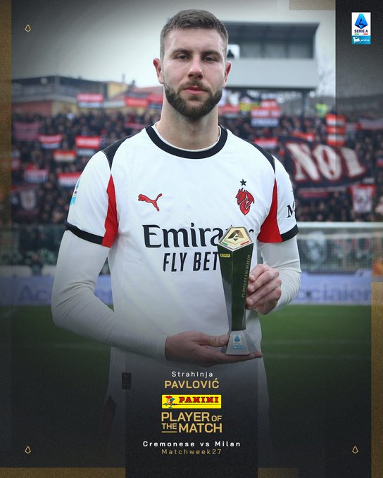 意甲官方:帕夫洛维奇当选米兰2-0克雷莫纳全场最佳球员