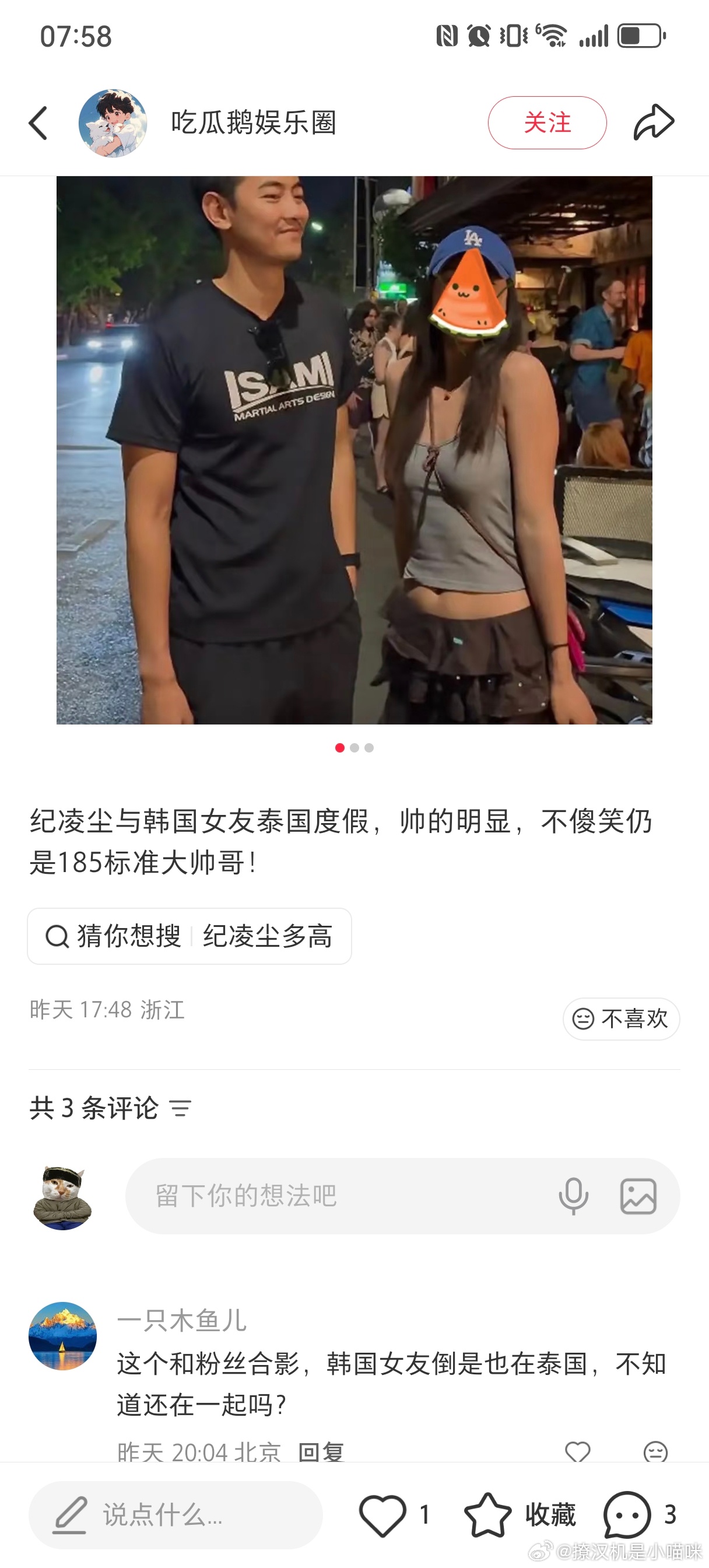 纪凌尘与韩国女友泰国度假神经病啊,泰国合影是谁粉丝啊。不过他女朋友也在泰国21年