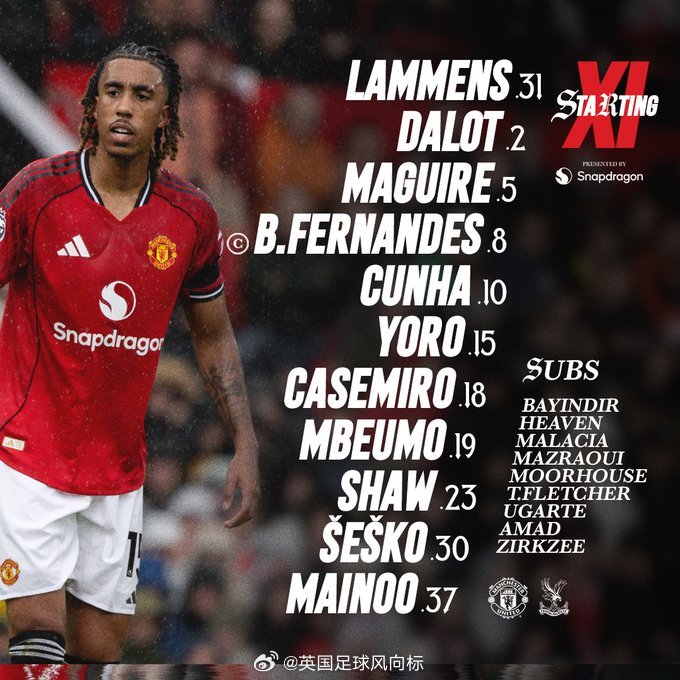 【谢什科首发】曼联vs水晶宫,临时主帅卡里克,第一次将中锋谢什科放在首发名单,迪亚洛退居替补!英超联赛