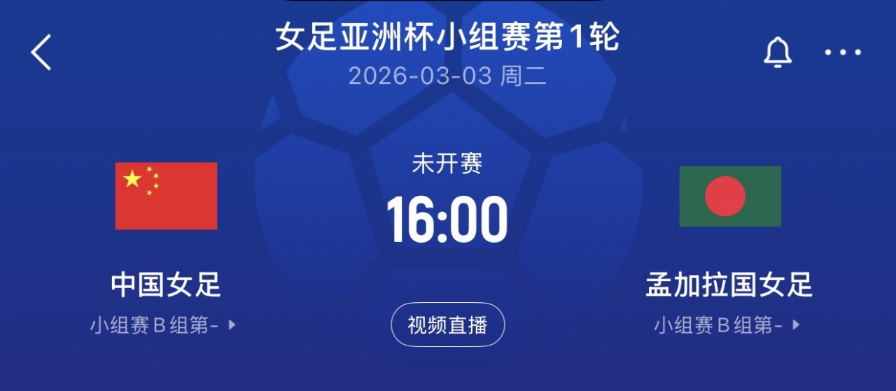 2026女足亚洲杯已于今日开赛,中国女足3月3日16点首战孟加拉国。