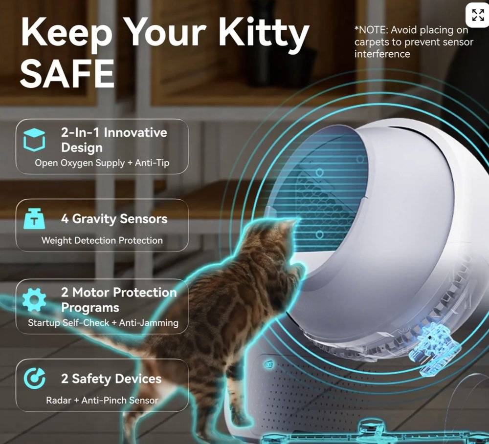 它有自动加沙功能,有行业首创的双摄像头:对外可实现猫脸识别,对内可完成宠物粪便分析,搭配专用猫砂,可以精准识别早期糖尿病风险;还加入了独立新风系统,把气味直接从猫砂盆内抽走、排到窗外。