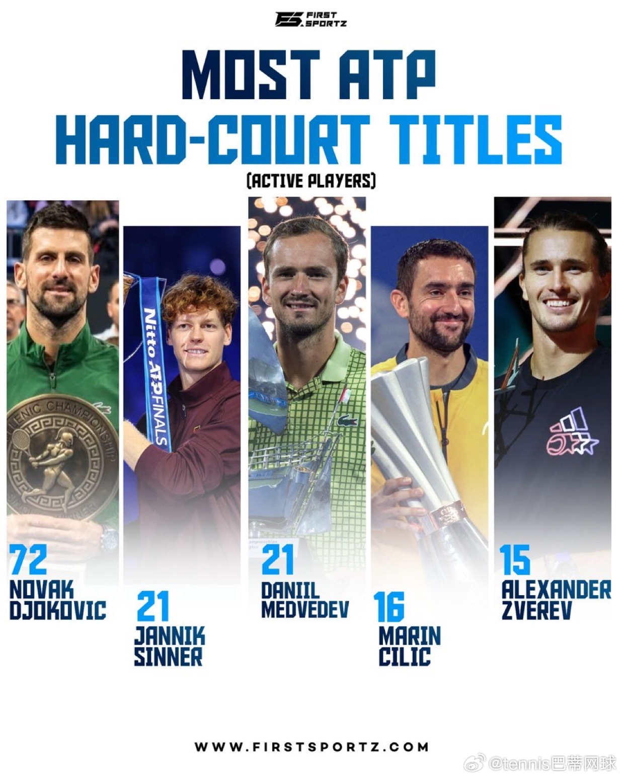 ATP硬地冠军(现役球员):