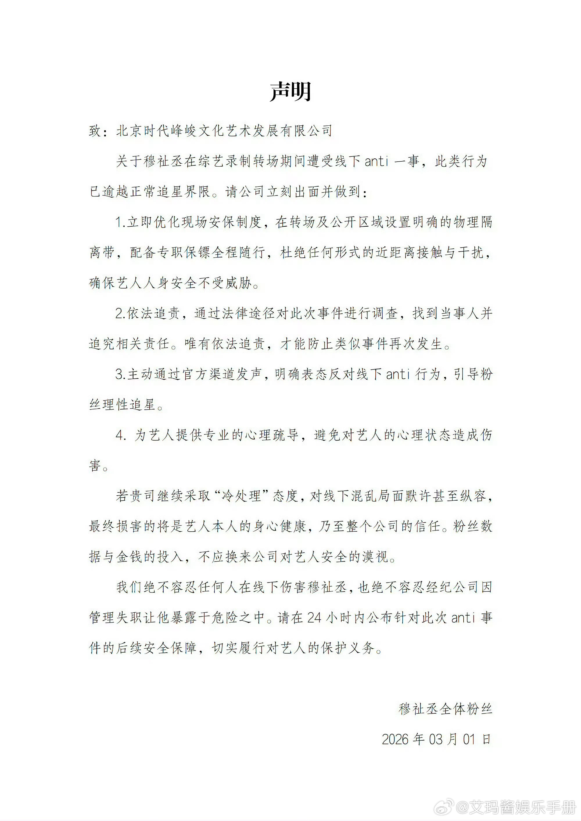 穆祉丞数/据组针对线下anti发布追责声明👇🏻