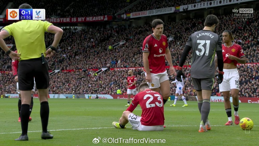曼联被迫做出换人调整肖受伤下场,马兹拉维替补出场屋漏偏逢连夜雨了这种踩脚容易有一种伤是跖骨骨折曼联vs水晶宫