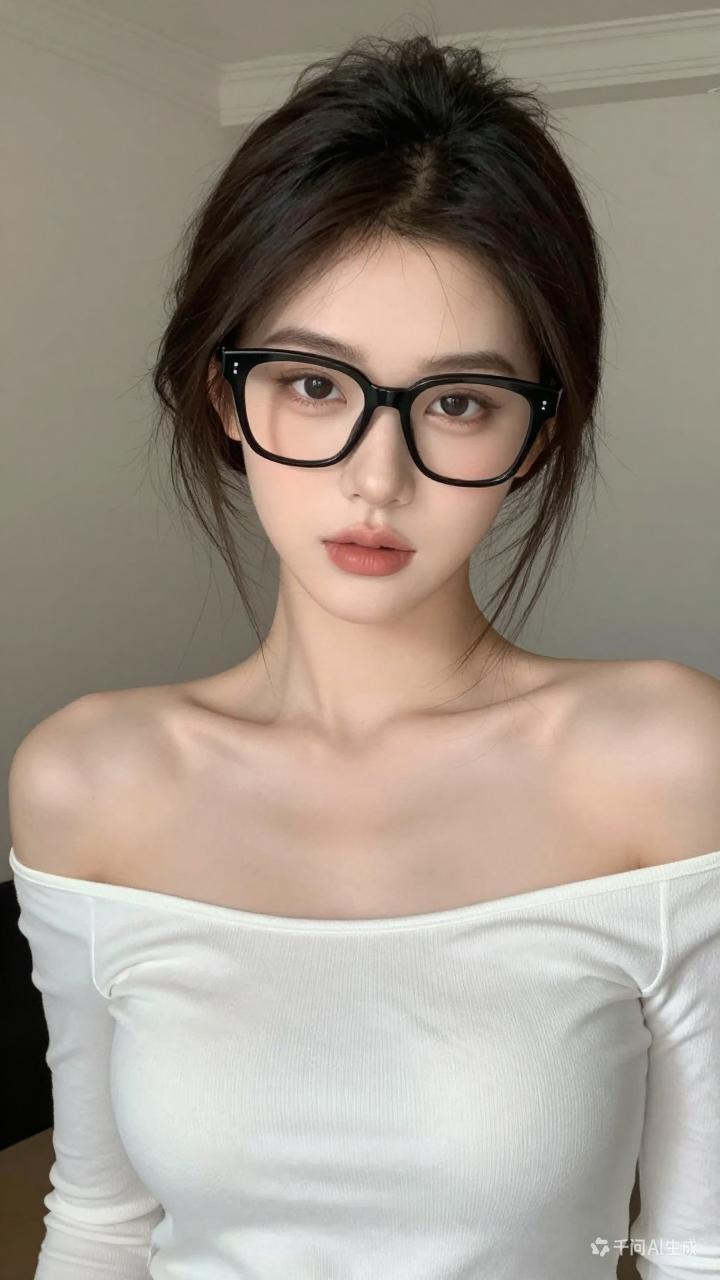 复古黑框眼镜,优雅白衬衫,简约而不失时尚。