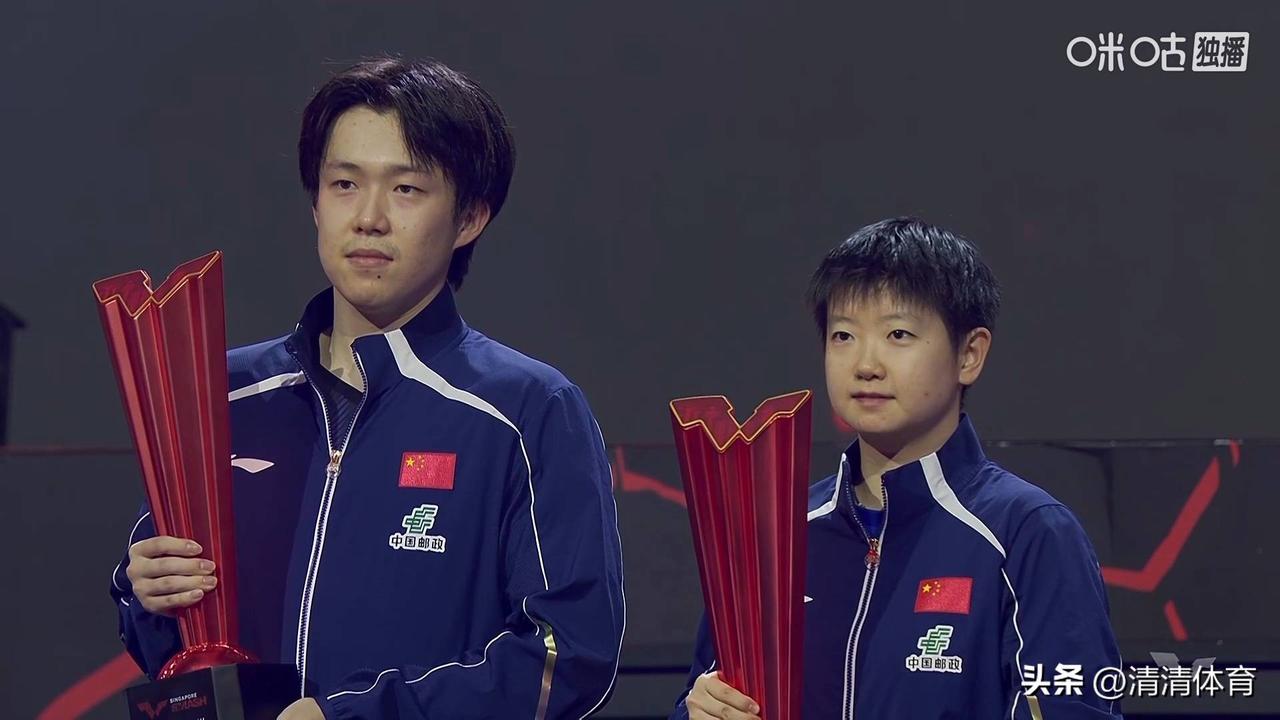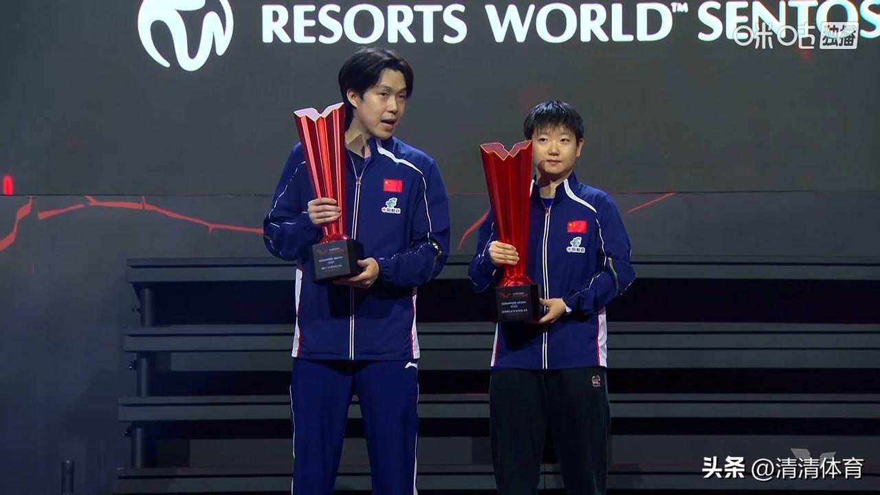 |莎头顶峰合影,最舒心的国乒风景 新加坡大满贯,孙颖莎、王楚钦双双拿下单打冠军,再度顶峰相见。这张并肩捧杯的合影,没有刻意姿态,却自带从容与温暖,是球迷心中最舒心的画面。 赛场上他们各自为王、沉稳抗压,领奖台边默契同框、笑意真诚。从年少同行到双双登顶,这份并肩成长的底气,正是中国乒乓最动人的传承。少年并肩,顶峰相见,愿他们继续闪耀,书写更多荣耀。