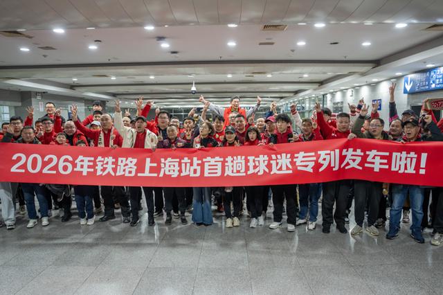 1日上午10时,G7008次列车载着370余名上海海港足球队球迷从上海站驶出,前往江苏南京观看2026中国足协超级杯决赛。记者从中国铁路上海局集团有限公司(以下简称上铁集团)获悉,这是长三角地区2026年开出的首趟“球迷专列”。