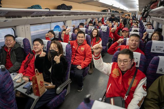 车厢内部经过专属主题布置,随处可见球队元素与球迷文化装饰,让球迷从登车的那一刻起,即刻进入专属的“助威状态”。更具心意的是,列车乘务组为球迷量身打造了专属加油广播,在旅途中适时放送,将整节车厢打造成沉浸式的移动助威阵地。旅途中,球迷们可与志同道合的伙伴畅快交流、互动预热,一同为支持的球队呐喊,让奔赴赛场的路,也成为一场充满热爱的相聚。