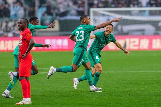 3月1日,北京国安队球员达万(右二)在比赛中庆祝进球。3月1日,2026中国足球协会超级杯在南京奥体中心体育场举行,北京国安队2比0战胜上海海港队,获得冠军。新华社记者李博摄