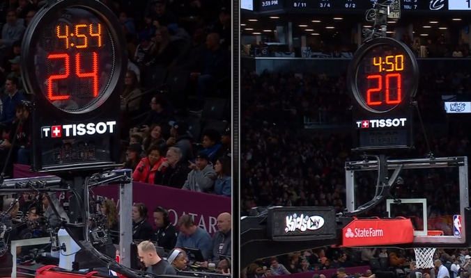 篮网主场两侧计时器时间不同,对骑士比赛被迫中断