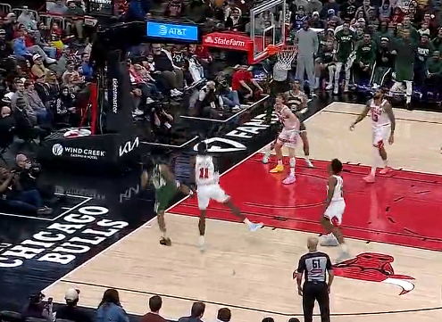 虎扑03月02日讯NBA常规赛,雄鹿客场对阵公牛的比赛正在进行中。