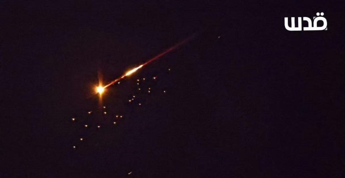 你看到的是一枚伊朗弹道再入飞行器 使用集束弹头 这在以前的战争当中从未出现过 弹头带着大量突防辅助装置再次进入大气层 小弹头可以欺骗引诱拦截弹,如果拦截不了当然也是炸弹 袭击目标是海法工业区 但是以色列没有发射拦截弹,所有弹头落地 这样的弹头,防空导弹确实拦截不了