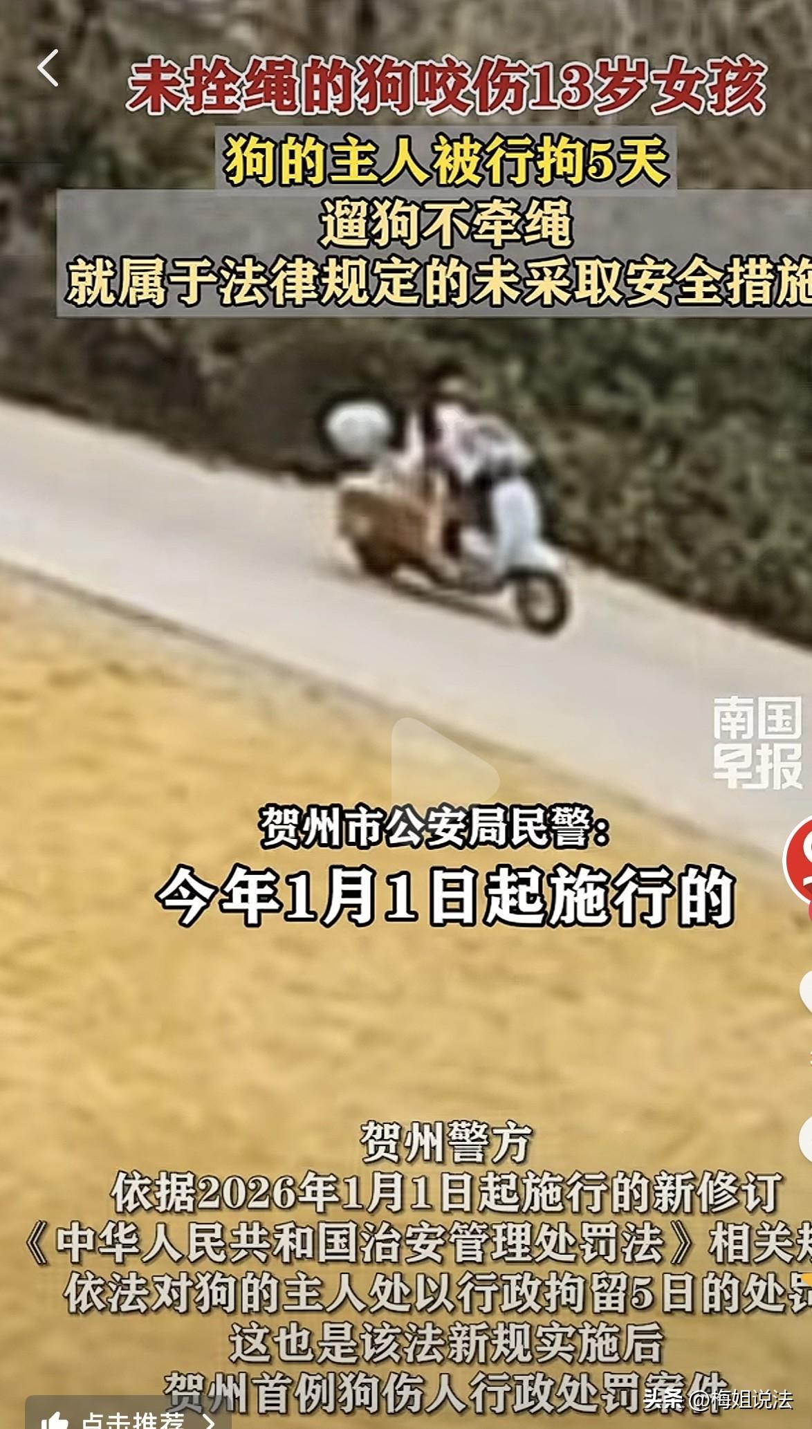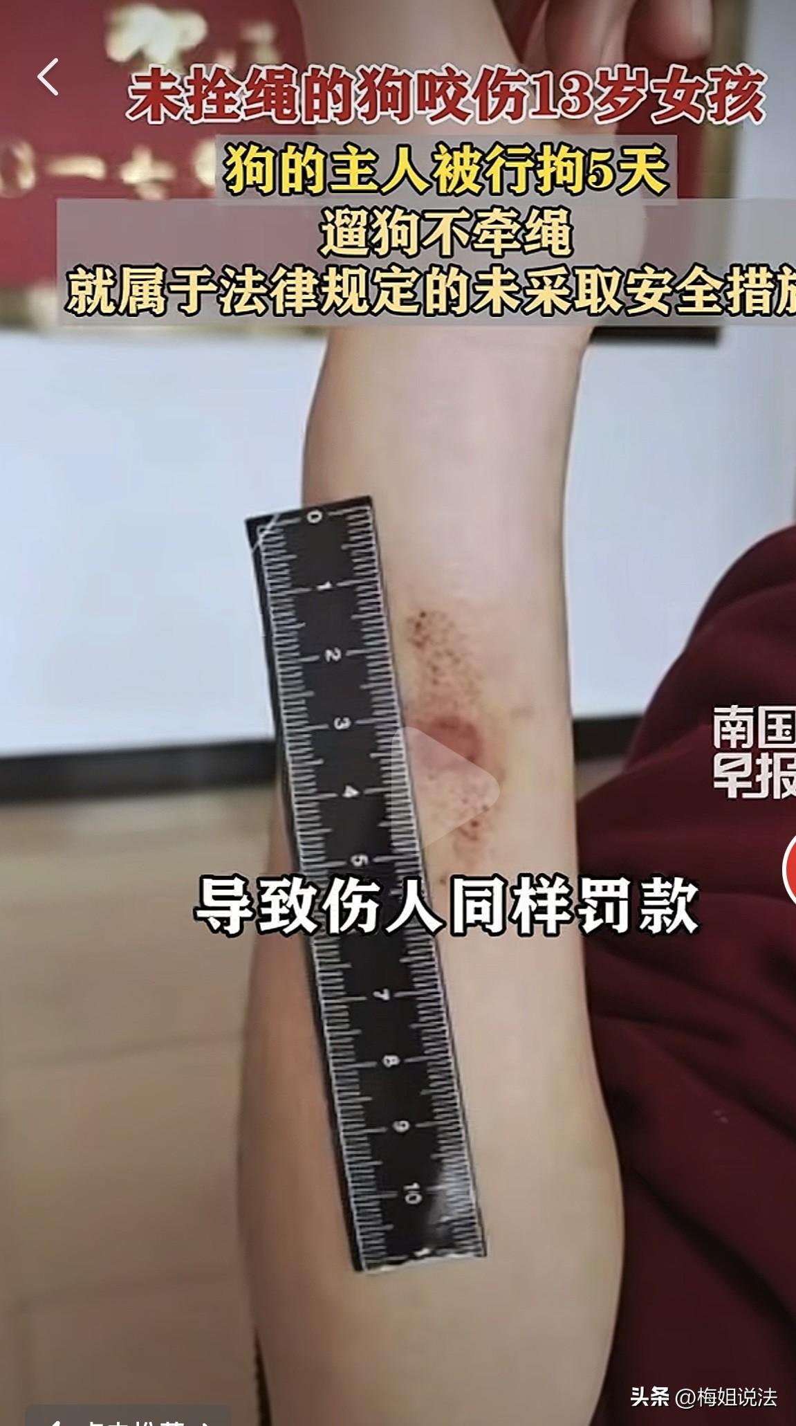 广西贺州,一位13岁女孩骑车路过某家仓库附近路段,一只位未拴绳的狗突然从路边窜出来冲向女孩,将女孩咬伤。狗为何没有拴绳子,朝女孩冲去? 据南国早报报道,女孩在路过时被没有拴绳子的狗咬伤。 据女孩反应当时在路上正常行驶,路过一家仓库时,一只没有拴绳子狗突然冲向我,当时我还没有反应过来,狗就咬到我的腿上,慌乱中,电车撞到路上树上,幸好旁边货车司机看到后,立马下车把狗赶跑。 货车司机立马打给女孩父母打电话,父母开车带女孩去医院进行治疗。 事后女孩父母找到狗主人,进行对质,狗主人拒不承认是自己的狗将女孩咬伤,在医院治疗期间费用也是一笔不承担。 女孩的父母,只好打电话报了警。 从监控中显示,确实是该主人的狗将女孩咬伤,货车司机可以做证,让狗主人看了一下证据,仍是不承认这是他家的狗。 民警只好展开调查,将这只狗调查出来。 据民警反馈狗主人当时就知道把女孩咬伤后,狗主人立马将狗送于他人,想将事情遮掩下去,等查到这,也不承认错误。 在实质性证据面前,狗主人承认这是他家的狗,但狗主人却不承担相应医疗费用。 狗主人反馈每天路过我们家门口那么多人,为什么只咬你们家女孩,不咬其他人。 女孩妈妈瞬间生气,你说的这是什么话,你的狗咬到人还这么无理取闹,我们只是想让你们赔偿相应医疗费用,又没有讹你们其他的,你们为啥这么说。 眼看双方越吵越凶,民警立即将双方人员安静,分别换到另一个地方调解。 跟狗主人说,你的狗咬到人应当给予赔偿,现在有法律规定,你可以去查一下,如果双方都能好好沟通,最后和解,不好好沟通,对方有权利将你告到法庭,所有的证据都有。 不想闹大,你就该赔偿对方,你自己好好想一想,想清楚怎么解决这件事。 跟女孩父母说,刚才已经跟狗主人讲清楚,事情的轻重,如果他愿意赔偿,到时候和解,不愿赔偿,到时候直接将他告到法院。 等狗主人想清楚后,与民警、女孩父母说,我愿意赔偿相应医疗费用,只要能将女孩治疗好,出多少钱都可以。 我居住的这个小区,也有很多养狗,有些大型犬狗主人拴着狗子我都感觉害怕,生怕狗冲上来,自己因为一些小时候的经历对狗产生了一定的阴影,我相信在座的各位也有。 在这里也要告诫养狗人士,外出时一定要拴狗绳,不要懒省事,拴个狗绳又不会浪费很多事,拴上狗绳会减少很多不必要麻烦,在外出遛狗,也要看好自己狗。 被没有拴绳子的狗咬伤后,被咬人应当如何去维护自己的权益? 根据《治安管理处罚法》第八条,未拴绳子的狗咬人时,应当赔偿被咬人相应损失,及医疗费、误工费,情节严重者,需承担相应刑事责任。 经民警调解,狗主人赔偿女孩所有费用。