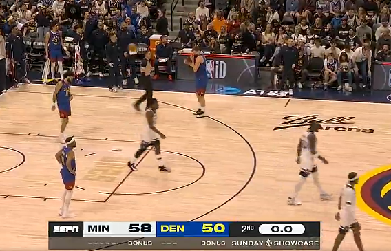 虎扑03月02日讯NBA常规赛,掘金主场迎战森林狼的比赛正在进行中,目前上半场比赛结束掘金50-58落后森林狼。