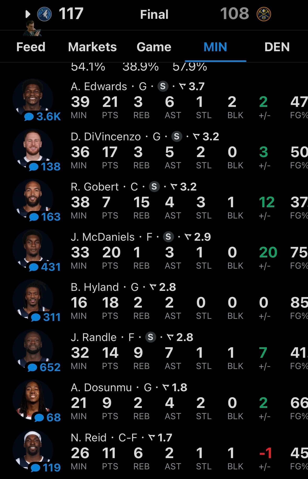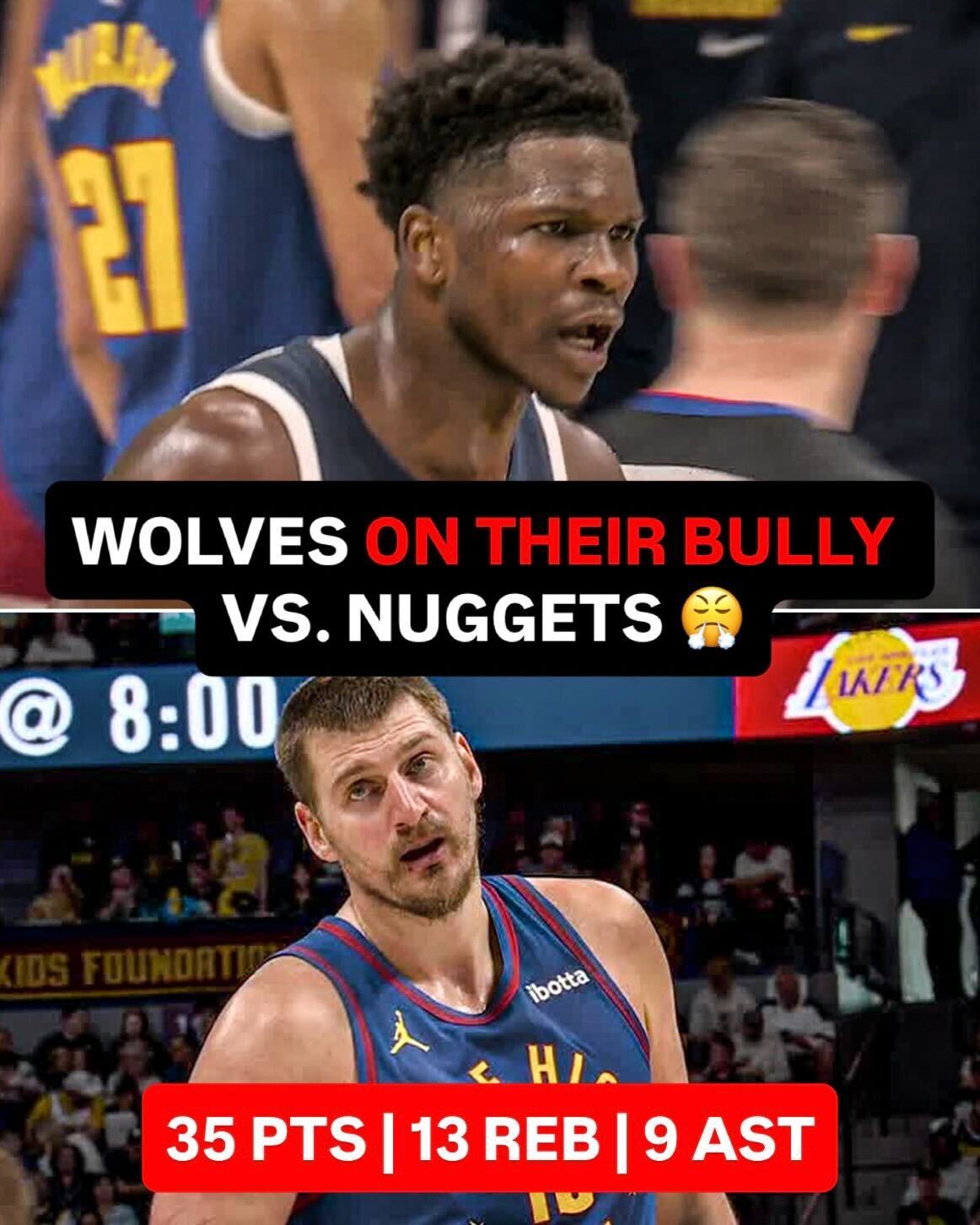 森林狼117-108击败掘金,约基奇空砍35分13板9助攻,湖人距离掘金差1个胜