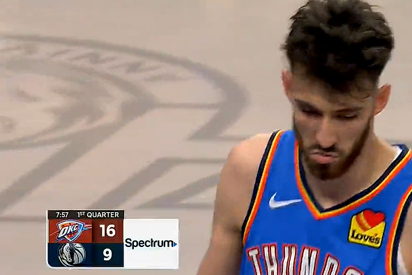 霍姆格伦防守成功后积极快下暴扣,雷霆打出12-0打停独行侠