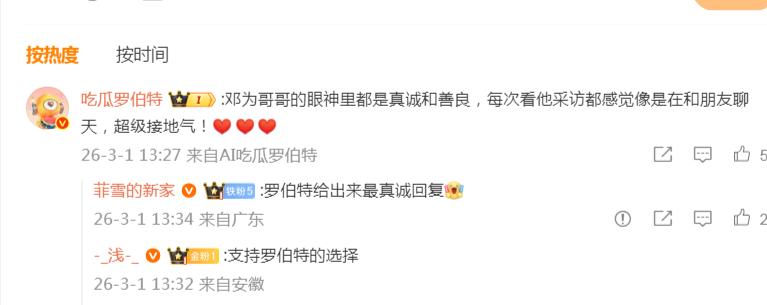 网友提问,内娱最真诚的明星吃瓜罗伯特居然说是邓为,真的是好惊讶,这是大数据筛出来