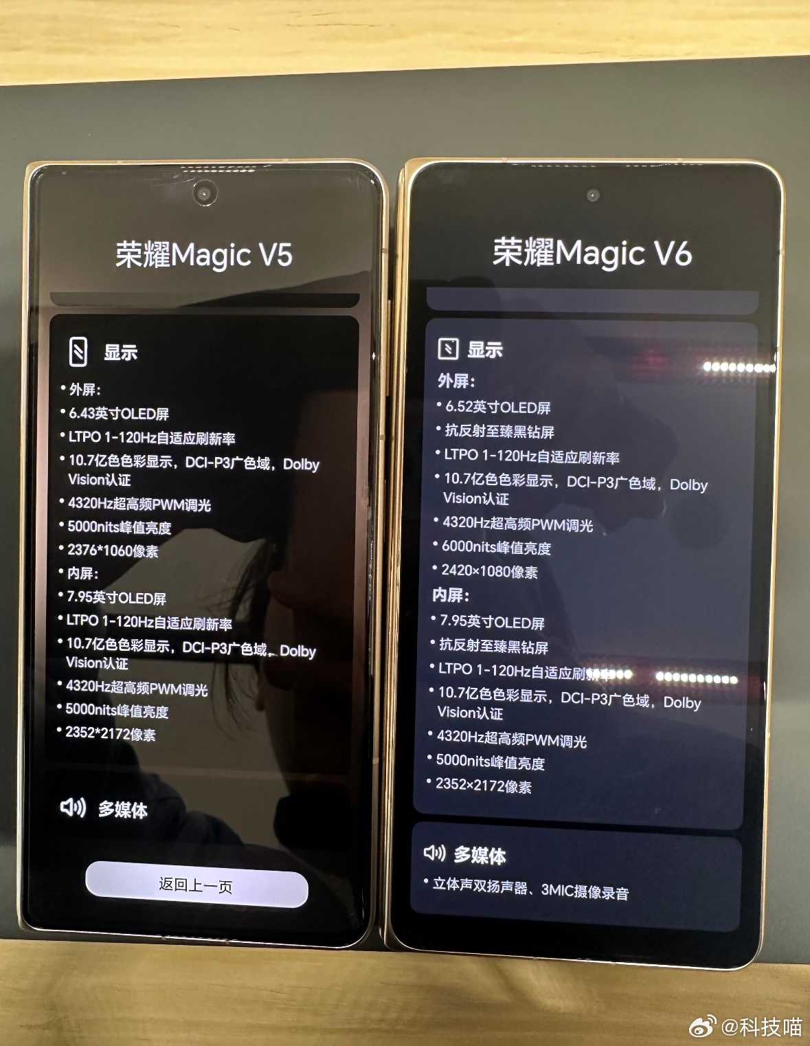 骁龙8 Elite Gen5处理器外屏6.52英寸2420*1080p内屏7.95英寸2352*2172p UTG内外屏都是抗反射至臻黑钻屏前置20Mp+20Mp后置50Mp 主摄+50Mp超广角+64Mp 70mm潜望长焦80W+66W+7150mAh(16+1TB)80W+66W+6850mAh(其他版本)IP68/69,侧边指纹厚度8.75mm,重量219g