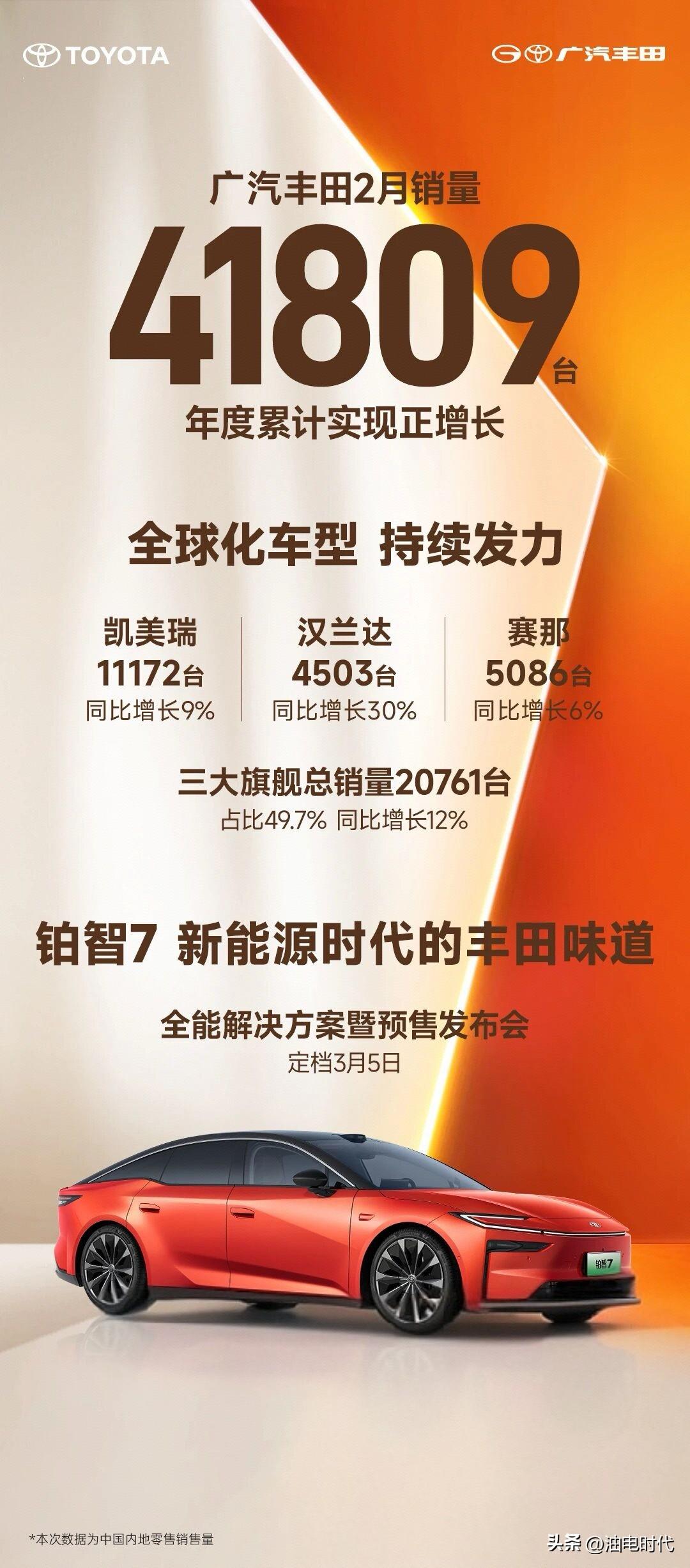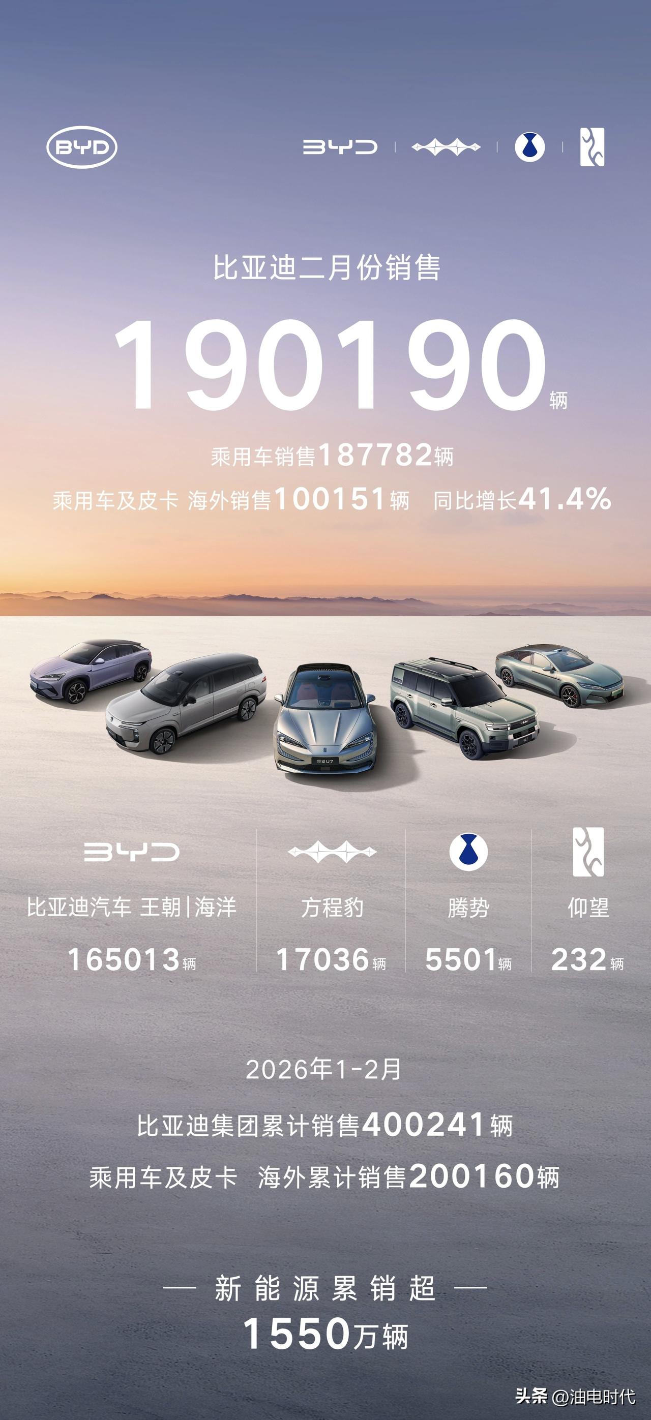 2月传统汽车品牌销量: 吉利汽车 206160辆 出口60879辆 比亚迪汽车 190190辆 出口100151辆 奇瑞汽车 160765辆 出口100000+辆 长城汽车 72594辆 出口同比增37.4% 广汽丰田 41809辆 东风本田 17583辆 这两个月的销量确实惨淡,对于中国品牌来说,发展新能源和扩大出口都是新的增长极,而且外部不受春节等原因影响。