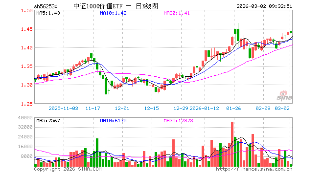 中证1000价值ETF(562530)业绩比较基准为中证智选1000价值稳健策略指数收益率,管理人为华夏基金管理有限公司,基金经理为张金志,成立(2022-07-28)以来回报为44.11%,近一个月回报为1.82%。