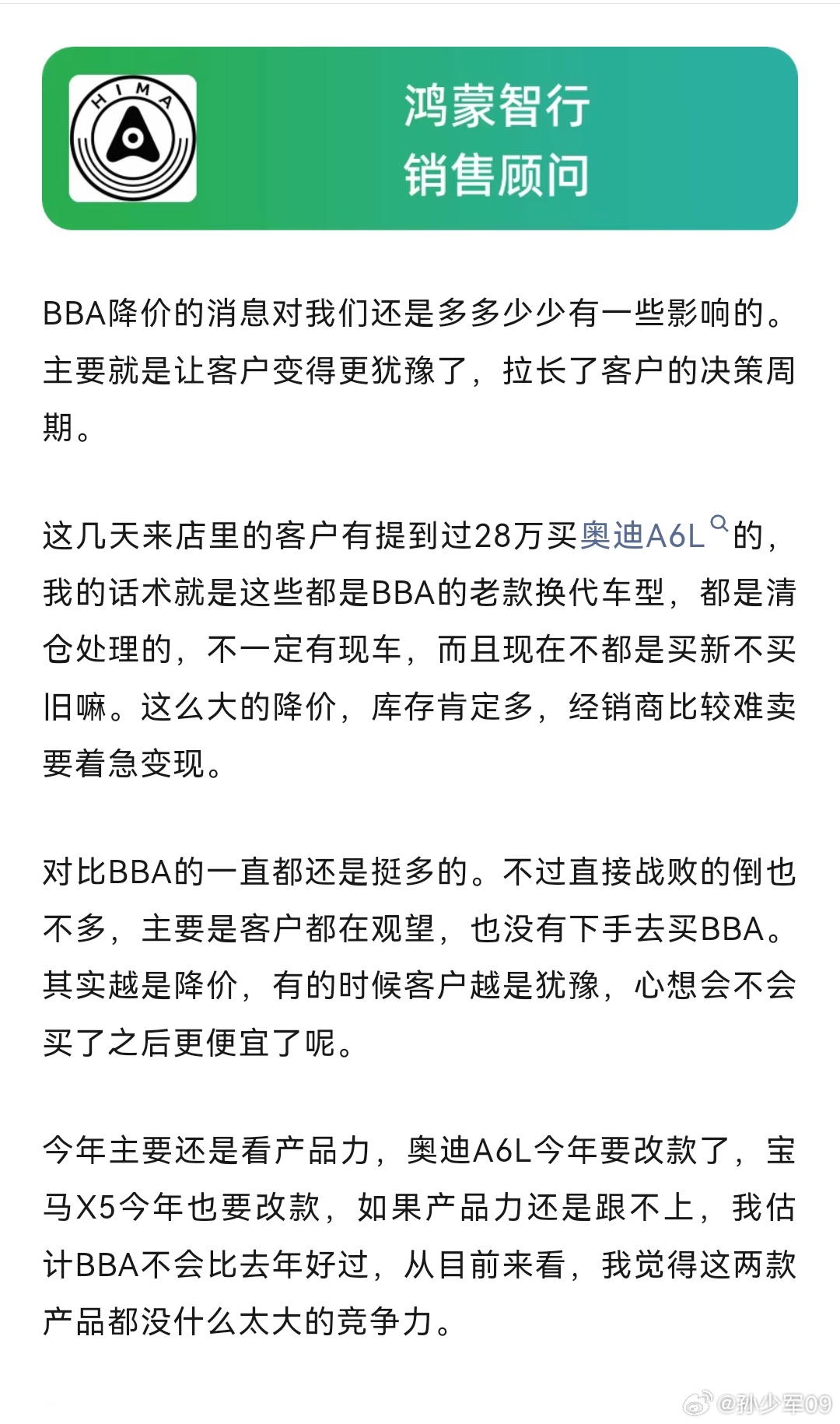 BBA大降价给谁带来压力了?前几天传出BBA集体降价的消息,还上了热搜。我们找来BBA、以及两位国产豪华品牌的销售,一起来聊聊实际情况。