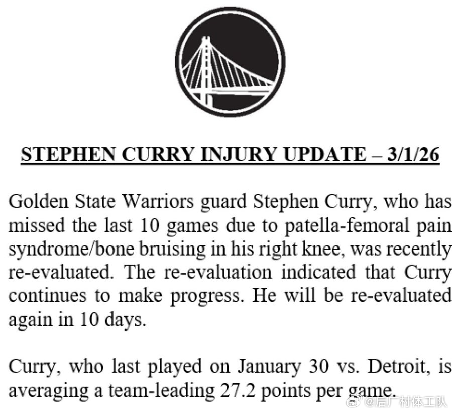 库里今日接受复查显示他的膝盖伤并未痊愈,至少还会再缺席5场比赛,科尔也在昨日的采访中说库里这次的伤病很罕见,归期十分不确定。