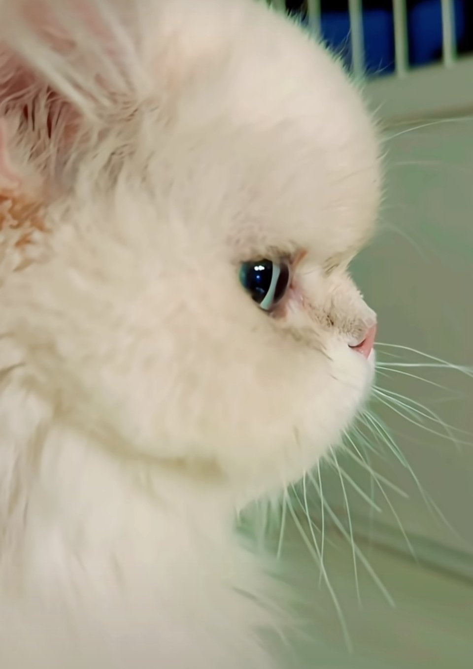 这个小猫咪如此配合主人给其打扮,说明它已略懂主人的意图,加之主人可能给小猫打扮并