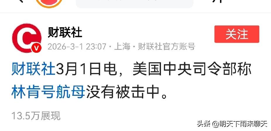 伊朗说打中了,美国说没打中,这事可就不好调解了。 虽然老夫还是希望伊朗能给那耀武扬威的航母来个当头一棒,脑门上打个洞也好,但是,这技术要求太高,伊朗难以做到。 弹道导弹打航母基本上不可能伤到航母分毫,近不了身哟。用高超音速导弹打航母还有可能,但是得多方位饱和攻击,关键还得在茫茫大海上发现并锁定得了目标。 伊朗如果没有引进“千里眼”技术,靠碰运气打中航母,难如登天。