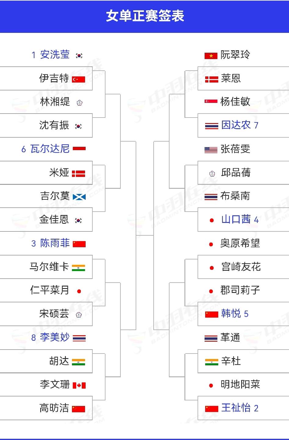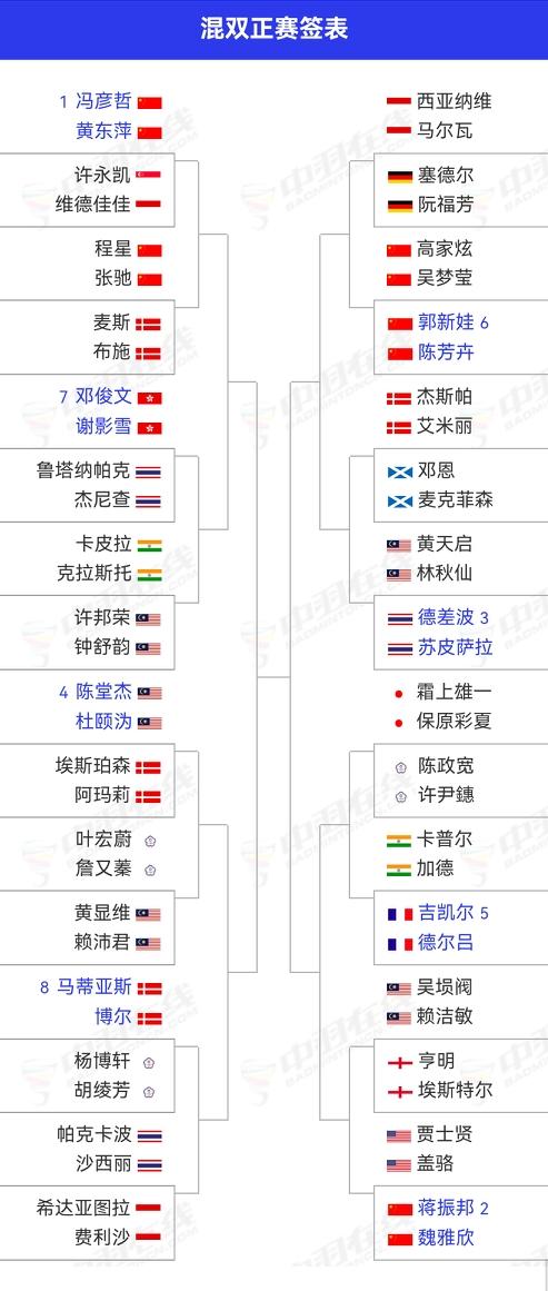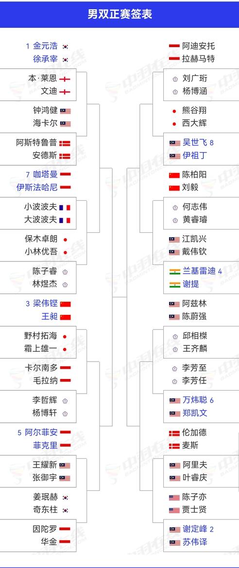 3.3-3.8,全英羽毛球公开赛,国羽18人(组)参赛。 1️⃣男单 石宇奇、李诗沣、王正行、翁泓阳上半区,陆光祖独守下半区。首轮对阵: 石宇奇🇨🇳 vs 拉克什亚🇮🇳 李诗沣🇨🇳 vs 王正行🇨🇳 翁泓阳🇨🇳 vs 李卓耀🇭🇰 陆光祖🇨🇳 vs 昆拉武特🇹🇭 2️⃣女单 陈雨菲、高昉洁与安洗莹在上半区,王祉怡与韩悦在下半区。首轮对阵: 陈雨菲🇨🇳 vs 马尔维卡🇮🇳 高昉洁🇨🇳 vs 李文珊🇨🇦 王祉怡🇨🇳 vs 明地阳菜🇯🇵 韩悦🇨🇳 vs 郡司莉子🇯🇵 3️⃣男双 梁伟铿/王昶在上半区,上半区还有徐承宰/金元浩,陈柏阳/刘毅分在下半区。首轮对阵: 梁伟铿/王昶🇨🇳 vs 野村拓海/霜上雄一🇯🇵 陈柏阳/刘毅🇨🇳 vs 何志伟/黄睿璿ᴛᴘᴇ 4️⃣女双 4对中国球员全在上半区,呵呵!首轮对阵: 刘圣书/谭宁🇨🇳 vs 胡绫芳/郑宇倢ᴛᴘᴇ 贾一凡/张殊贤🇨🇳 vs 阿莱西娅/费比🇮🇩 李怡婧/罗徐敏🇨🇳 vs 加夫列拉/斯蒂法尼🇧🇬 5️⃣混双 冯彦哲/黄东萍程星/张驰在上半区,蒋振邦/魏雅欣、郭新娃/陈芳卉、高家炫/吴梦莹在下半区。首轮对阵: 冯彦哲/黄东萍🇨🇳 vs 许永凯🇸🇬/维德佳佳🇮🇩 程星/张驰🇨🇳 vs 麦斯/布施🇩🇰 蒋振邦/魏雅欣🇨🇳 vs 普雷斯利/珍妮·盖🇺🇸 郭新娃/陈芳卉🇨🇳 vs 高家炫/吴梦莹🇨🇳