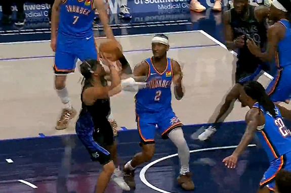 内姆布哈德迎着SGA后仰中投命中,打破独行侠近5分钟得分荒