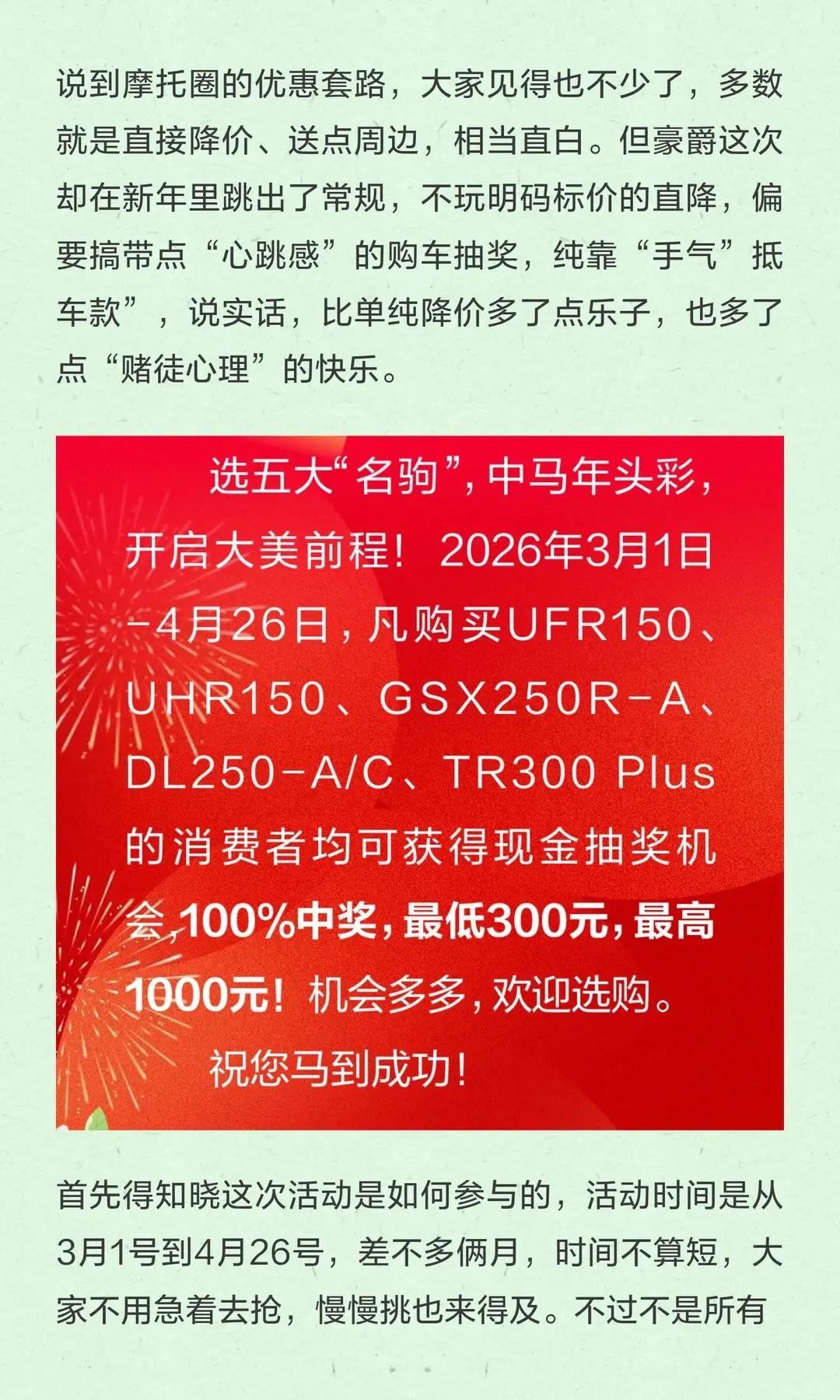 买车还能拼欧气!豪爵100%中奖红包活动。买车还能拼欧气!豪爵100%中奖红包活动,有点上头!摩托车 机车 豪爵 豪爵uhr150