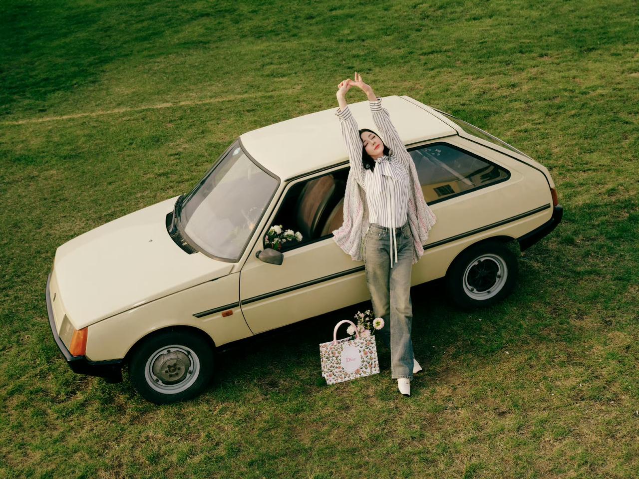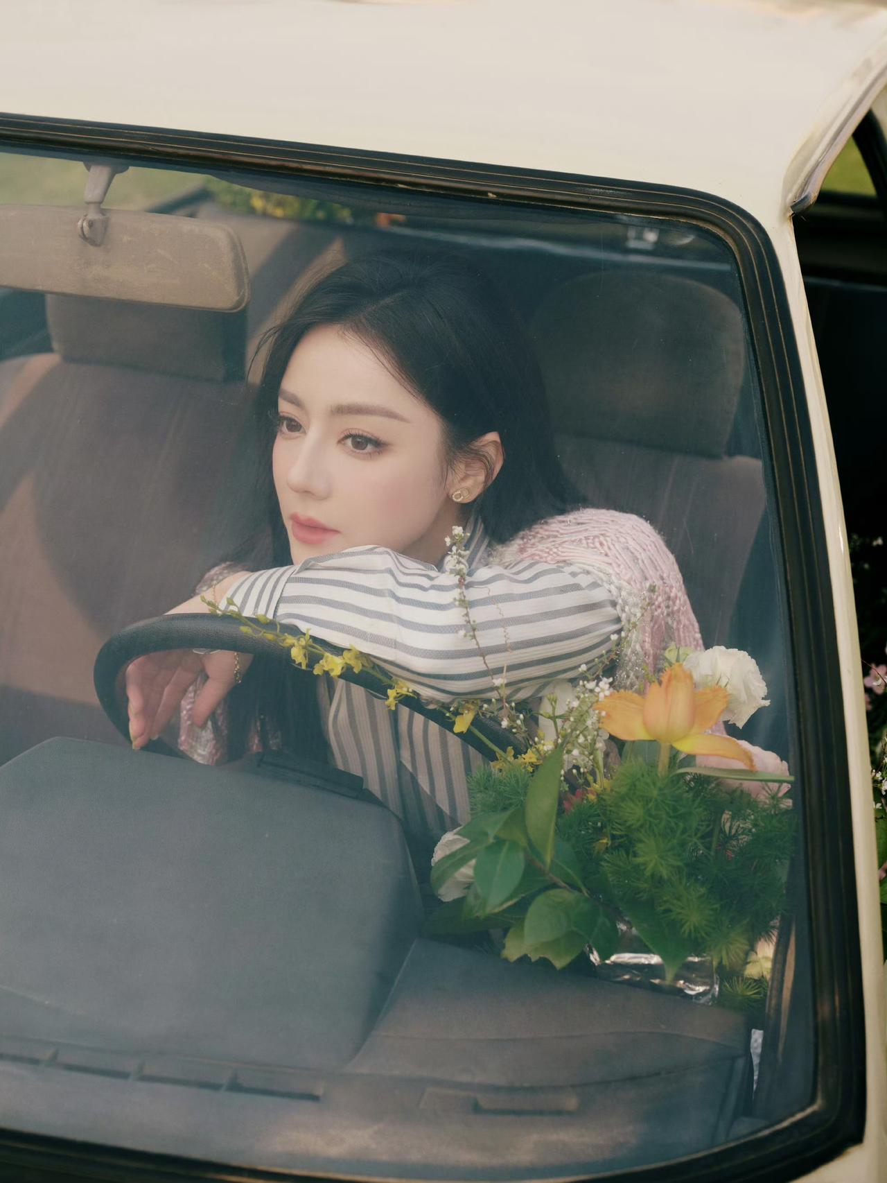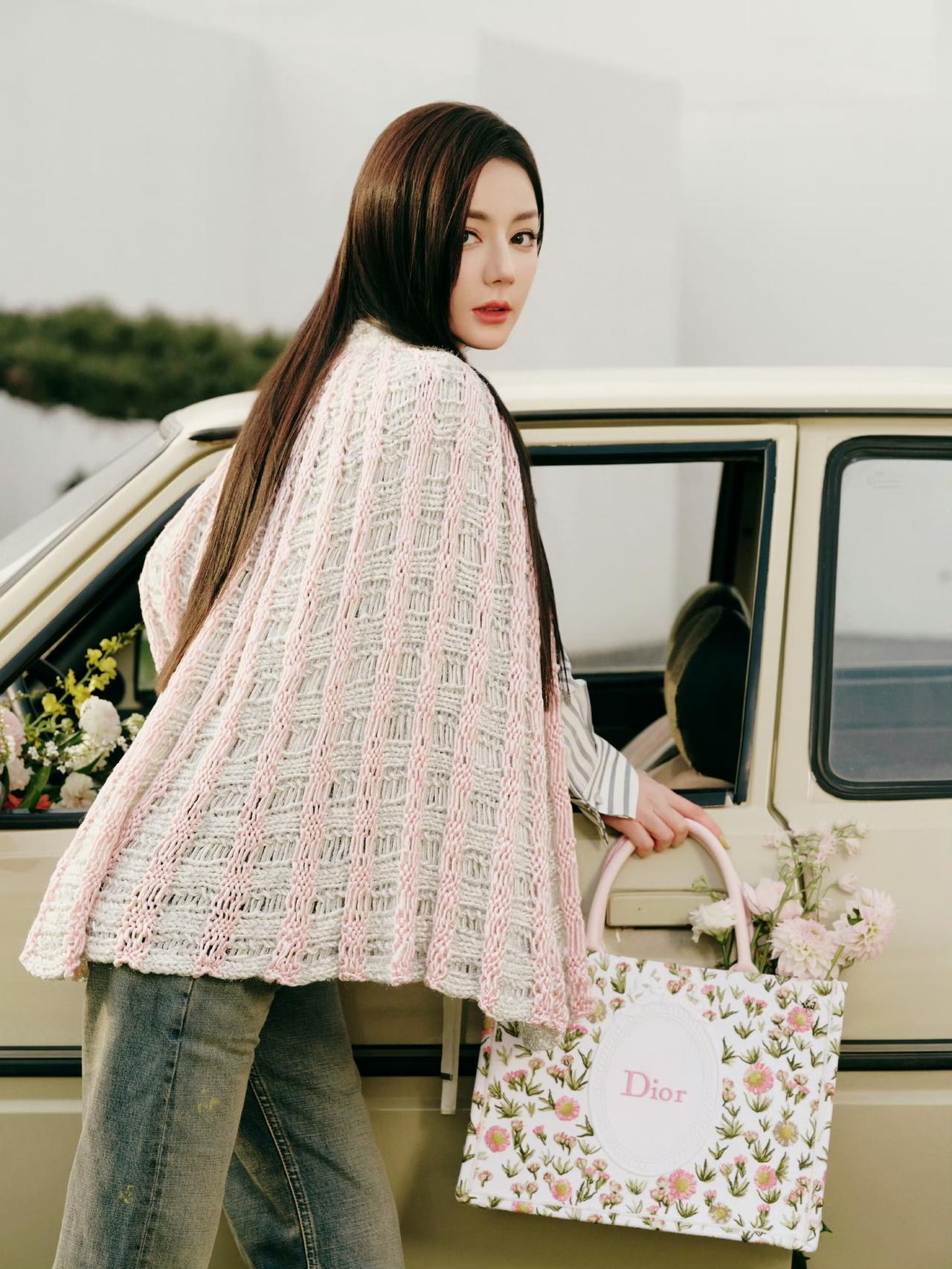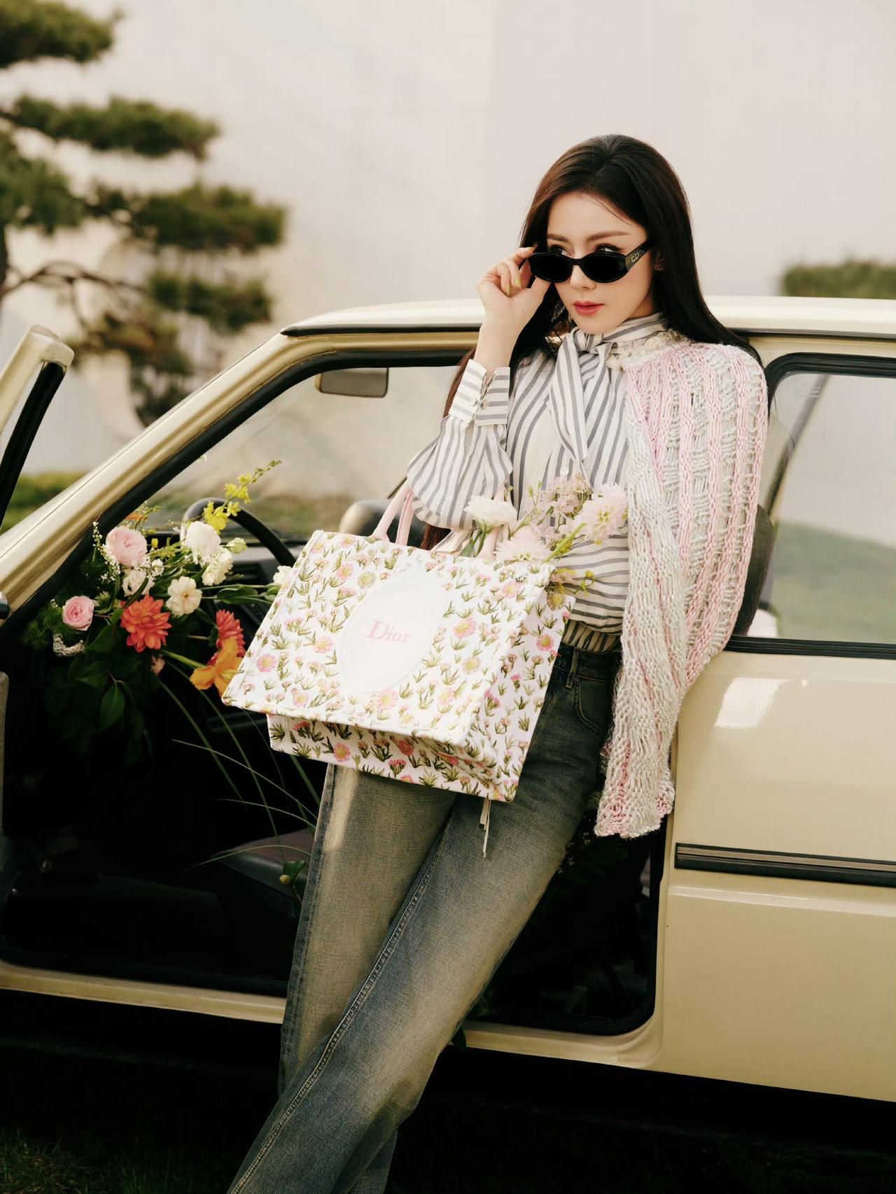 跟着迪丽热巴学春日穿搭 简单的条纹衬衫搭配牛仔裤 清爽又不失格调 春天的气息越来