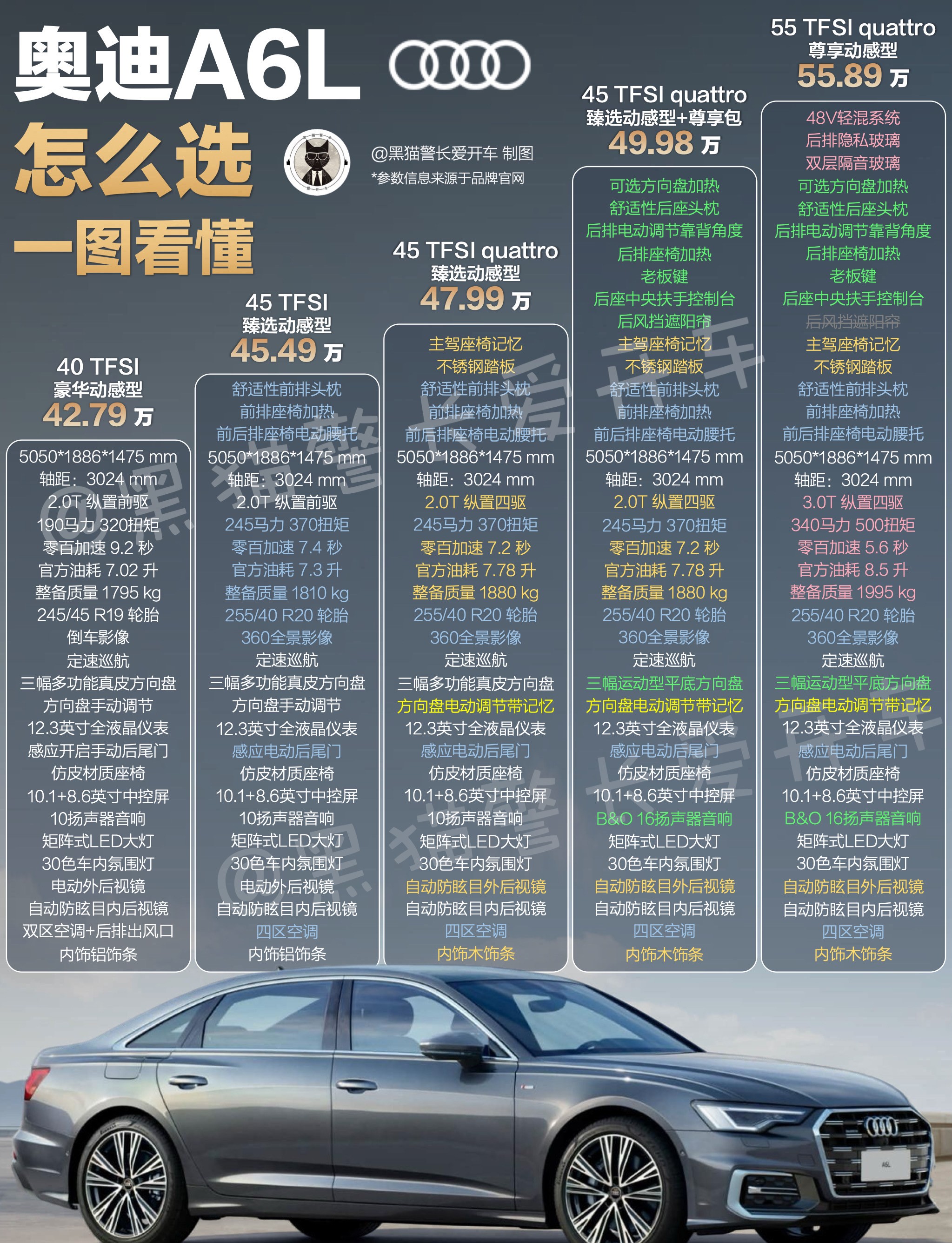 一分钟看懂、奥迪A6L怎么选!