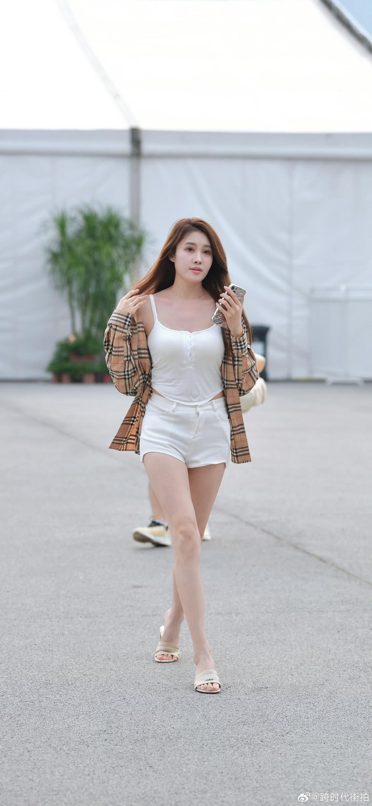 都市风穿搭,白色上衣+黑色喇叭裤,走在乡间小路上,尽显时尚与自然之美!