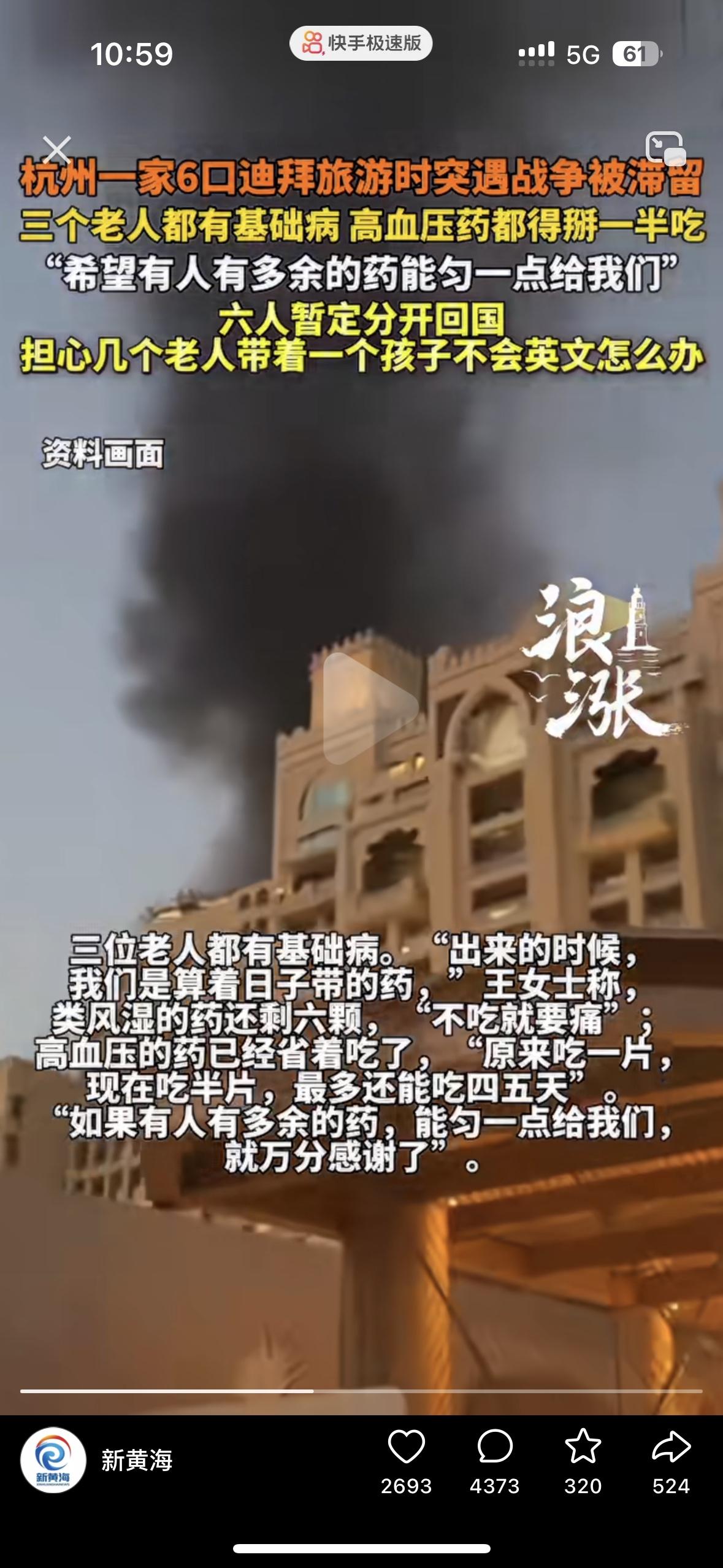 杭州6口人为我们诠释了什么是回家真好 他们趁春节出去旅游,却遇到了战争,在迪拜的机场里分高血压药片!一家人的快乐旅行变成了绝境求生 3位有基础病的老人正守着所剩无几的药瓶发愁,类风湿药只剩6颗,高血压药被迫减半服用,最多还能撑4.5天,在人群中的求救声格外刺耳。 领空关闭,航班取消,归途被战火斩断。令人揪心的是为了回家,他们不得不分开,不懂英文的老人要带着年幼的孩子要独自面对陌生的机场和未知的恐惧。 战争的可怕从来不是遥远的新闻,而是真真切切的感受,与其出国感受异域风情,不如在家踏踏实实的,起码幸福又安全!