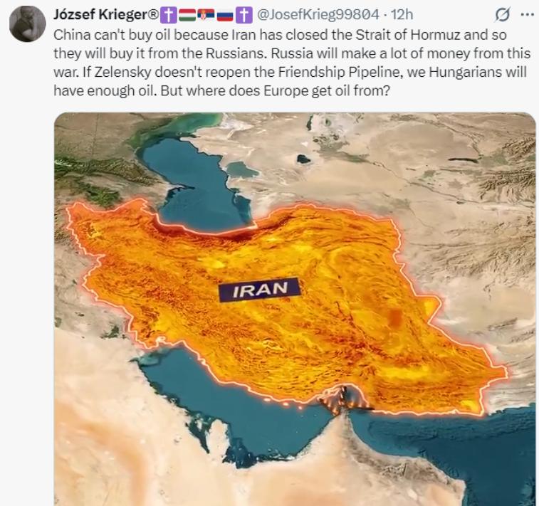3月1日,美伊开战,最慌的竟然是欧洲。匈牙利媒体人约瑟夫·克里格说:“伊朗关闭了霍尔木兹海峡,中国和欧洲都买不到中东的石油,但中国还可以从俄罗斯购买,俄罗斯也可以趁机赚取大量财富,那欧洲的石油从哪里来呢?” 这场冲突爆发后,全球多个地区都受到影响,而最坐不住、最慌张的不是别人,正是欧洲各国。匈牙利媒体人约瑟夫·克里格直接点出了欧洲面临的核心难题,他表示伊朗关闭霍尔木兹海峡后,中国和欧洲都无法正常从中东购买石油,但是中国还可以稳定从俄罗斯购买石油,俄罗斯也能借着油价上涨赚取大量财富,唯独欧洲没有可靠的石油来源,陷入了进退两难的境地。 欧洲如今的能源困境,是长期以来的选择导致的结果。自从俄乌冲突发生后,欧洲主动切断了与俄罗斯的主要能源合作,将大部分能源需求转向中东地区。 目前欧洲超过六成的原油、近一半的柴油都依赖从中东进口,这些能源几乎全部要经过霍尔木兹海峡运输。海峡一封锁,欧洲的能源输入通道就被直接掐断,短期内根本找不到能够弥补缺口的替代方案。 和欧洲相比,中国的能源供应要稳定得多。中国虽然也有部分石油来自中东,但俄罗斯一直是中国重要的石油供应国,2026年以来,俄罗斯对华石油出口持续保持高位,已经成为中国最主要的原油供应方之一。 即便中东石油通道受阻,中国依然可以通过管道、海运等方式稳定从俄罗斯获取石油,能源安全有充分保障,受霍尔木兹海峡关闭的影响远小于欧洲。 霍尔木兹海峡关闭、国际油价大幅上涨,直接让俄罗斯的能源优势进一步凸显。俄罗斯石油产量充足、出口稳定,油价上涨直接带动俄罗斯能源收入大幅增加,在全球能源格局中的地位持续提升。 欧洲当初放弃了俄罗斯的廉价稳定能源,如今只能看着俄罗斯借着地缘冲突扩大收益,这让欧洲各国更加焦虑。 欧洲各国面对能源危机已经乱作一团,想尽办法却找不到可行的出路。想从美国购买石油,美国石油不仅价格偏高,而且运输距离遥远,根本解决不了眼前的短缺问题。 想寻求其他产油国的帮助,短期内没有任何国家能拿出足够的供应量,满足欧洲庞大的能源需求。上一轮能源危机给欧洲带来的创伤还未痊愈,新一轮能源冲击又接踵而至,欧洲的经济和民生都面临严峻考验。 能源价格上涨会带动全品类物价上涨,欧洲普通民众的生活成本将大幅提高。家庭供暖、日常出行、食品消费等方方面面都要花更多钱,民众生活压力明显加大。 欧洲的制造业本就面临成本高、竞争力下降的问题,能源价格暴涨会让企业生产成本再上台阶,大量工厂可能出现减产、停工的情况,本就缓慢的经济复苏进程被彻底打断。 欧洲各国政府如今两头为难,一边要应对国内民众的不满情绪,一边要紧急寻找稳定能源供应的办法,却始终没有有效的解决方案。欧洲长期跟随美国参与中东事务,始终没有建立独立的能源安全策略,过度依赖中东单一地区的能源供应,如今遇到突发地缘冲突,只能被动承受损失。 美国自身页岩油产量充足,还有多元化的石油进口渠道,此次美伊冲突对美国国内的影响十分有限。欧洲作为美国的盟友,没有享受到安全保障,反而成了冲突中最受伤的一方,这样的局面也让欧洲内部出现了更多分歧与反思。 这场中东冲突不只是地区性的军事对抗,更是牵动全球经济的重大事件。能源是全球经济运行的基础,石油价格暴涨会引发全球性通胀压力,国际贸易、金融市场都会随之出现波动。在所有受影响的国家和地区中,欧洲的处境最为艰难,没有稳定的能源保障,后续的经济发展、社会稳定都会受到持续制约。 欧洲的遭遇也给世界各国提了一个醒,能源安全是国家稳定发展的根本,过度依赖外部供应、把能源渠道绑定在单一地区,一旦遇到地缘政治冲突,就会陷入完全被动的局面。 截至目前,美伊冲突还在持续,霍尔木兹海峡何时能够恢复通航依然没有明确答案,欧洲的能源难题短时间内无法解决,接下来欧洲还要面对更长时间的压力与挑战。
