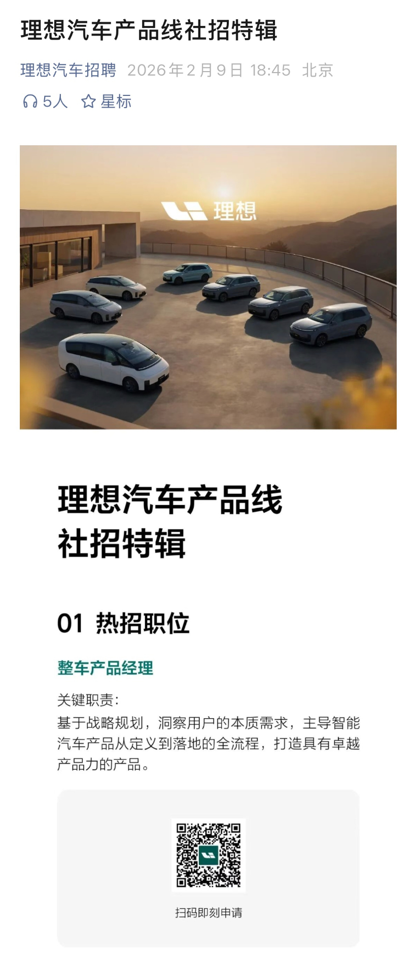 理想汽车产品线招聘”整车产品经理“了,特别欢迎大家推荐,也辛苦转发给身边有意向的朋友。