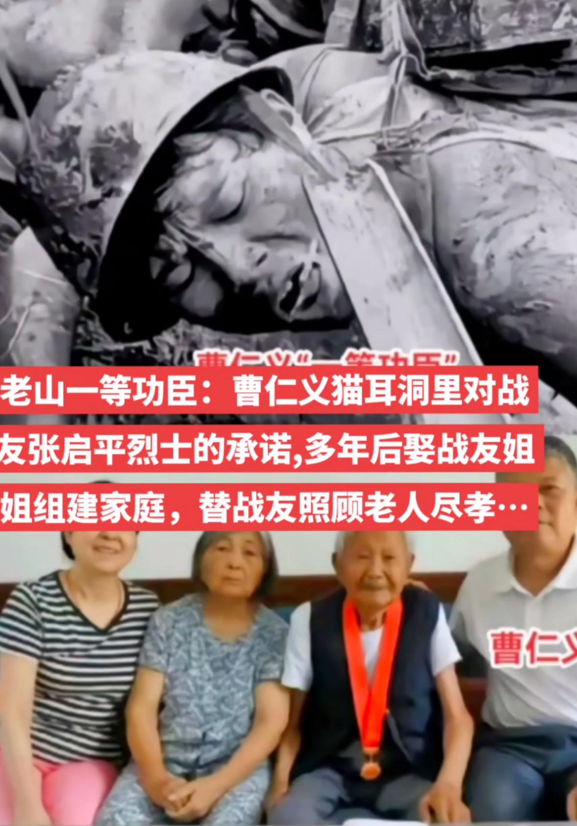 照片中正在艰难地运送武器弹药,不顾泥泞低头喝水的这名战士叫曹仁义。安徽人,一等功。原67集团军199师军工战士,1985年在老山轮战期间,他每天4次上阵地,每次背着100多斤的作战物资和生活用品,到前沿阵地四趟,来回八次穿越“百米生死线”。送上去的是物资,带下来的是伤员和战友的遗体。一个不知道什么叫累的战士,被誉为“累不死的老山骆驼”。他永远记得在猫耳洞里答应烈士张启平的生死依托,谁牺牲了,另一个就照顾对方父母,曹仁义用一辈子践守着张启平烈士的承诺。 曹仁义个人荣立一等功。 退役后,他信守承诺,替战友尽孝,承担照顾战友张启平烈士父母,与战友姐姐组建家庭,照顾双方父母,面对生活困难,曹仁义总是以微笑面对,他说再苦再难面对牺牲的战友又算得了什么。展现出高尚的品德和无私奉献精神。 图三:为清明节曹仁义在烈士张启平的墓碑前。40年过去了,虽然岁月苍老了容颜,但永不变的是深入骨髓的军魂,和对祖国和人民的忠诚,退伍不褪色,永葆军人本色,清澈的爱,只为祖国! 向老山功臣曹仁义致敬! 向所有参战老兵致敬!